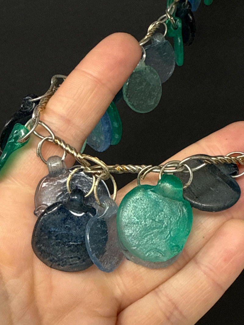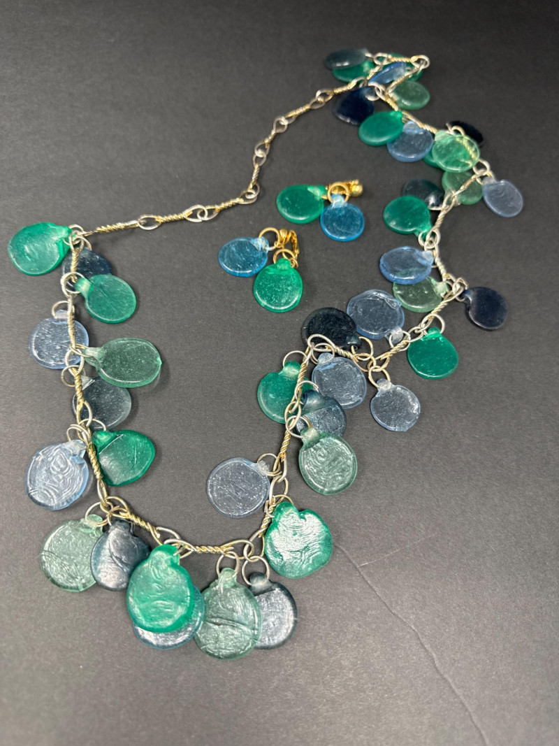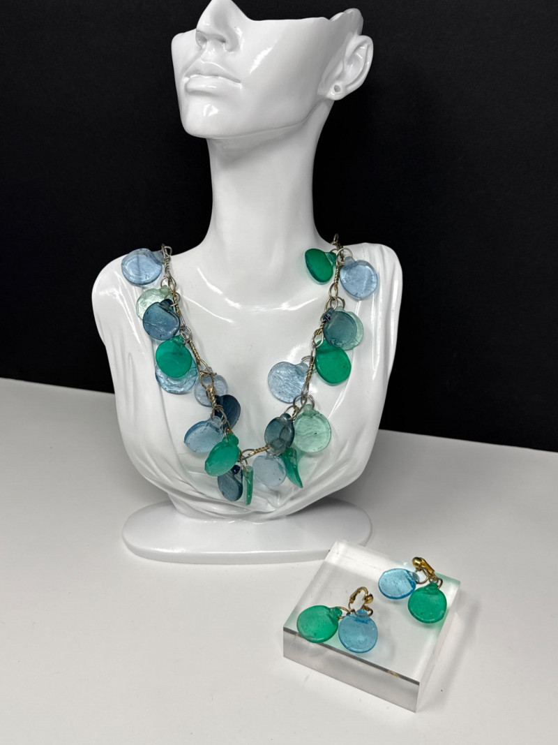 Vintage Blue & Green Sea Glass Necklace & Earrings