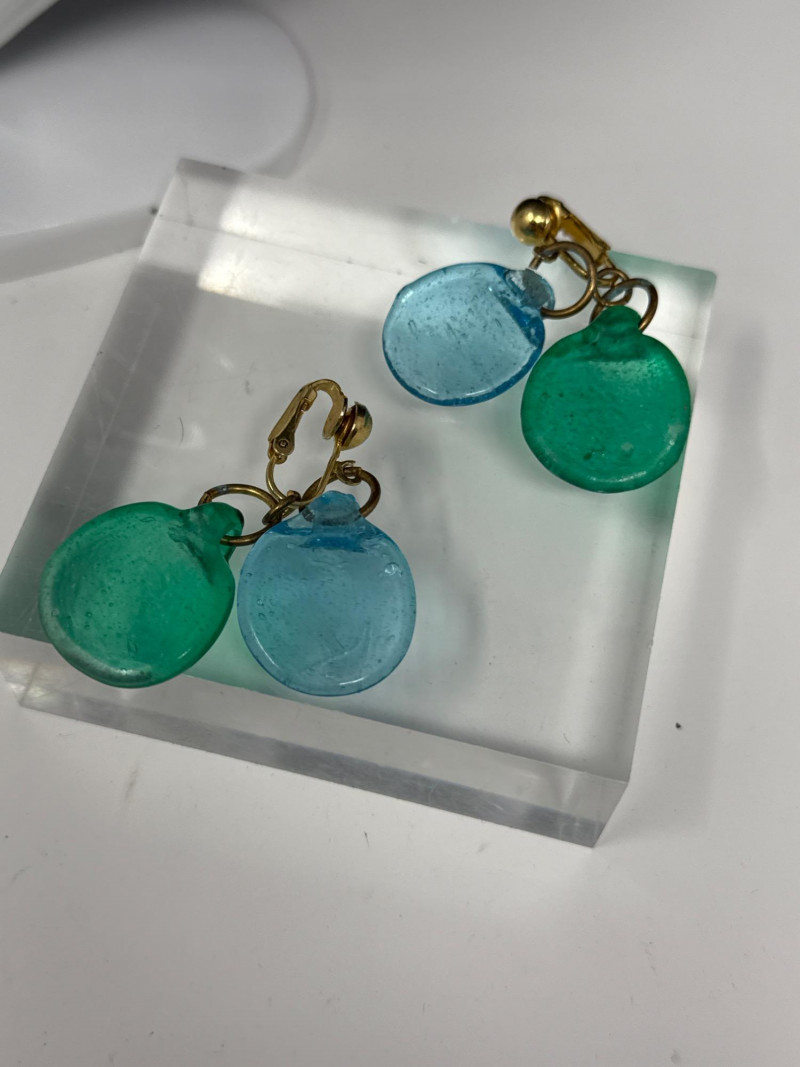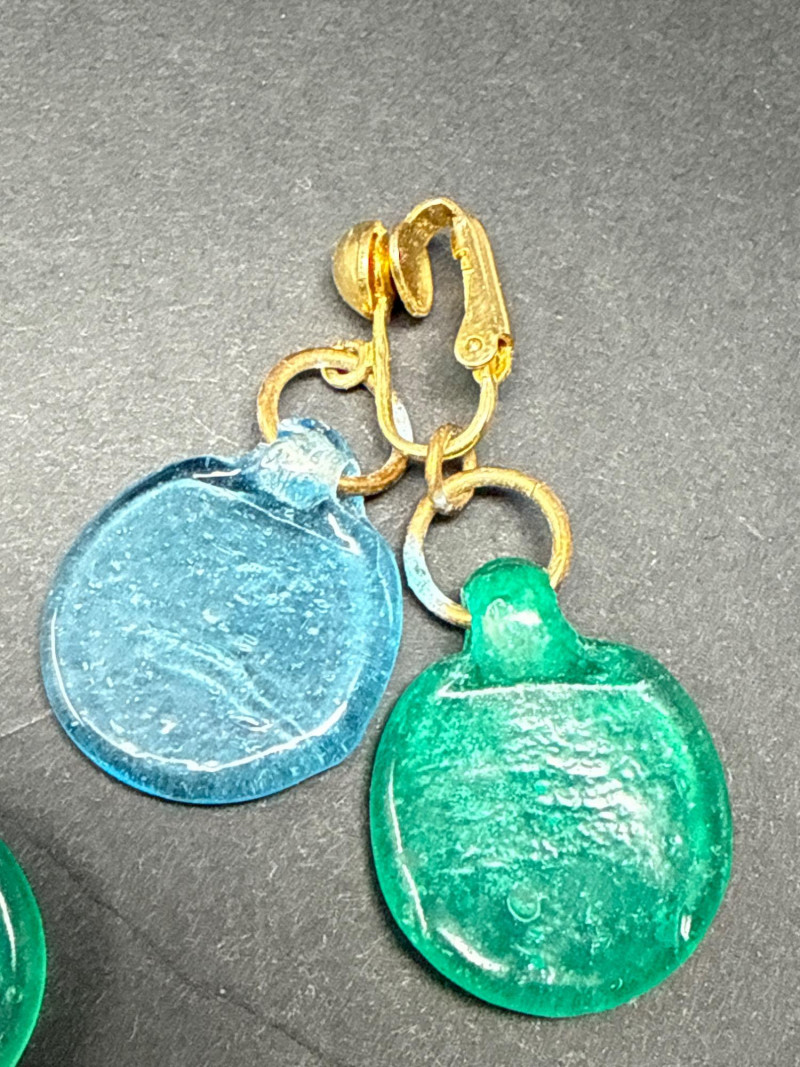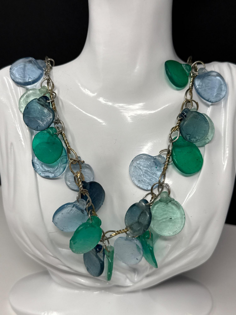 Lot # 158 - Vintage Blue & Green Sea Glass Necklace & Earrings
