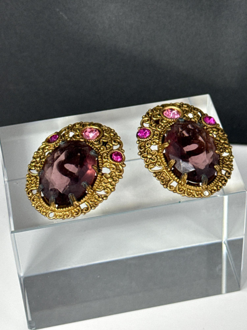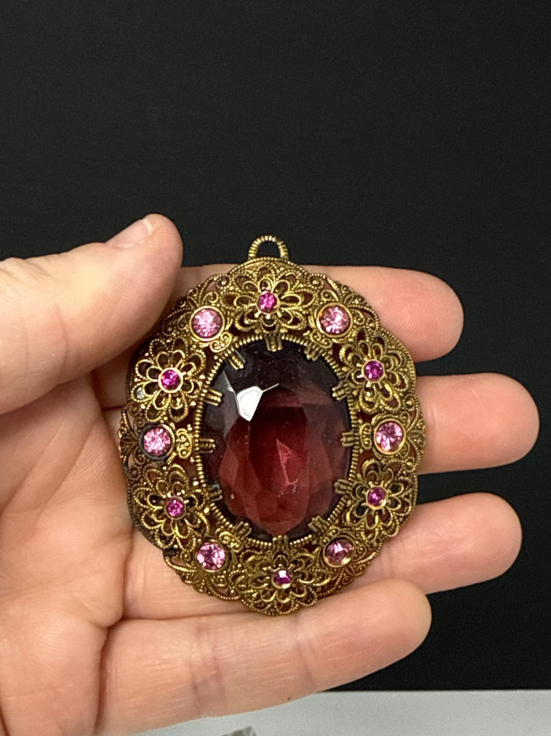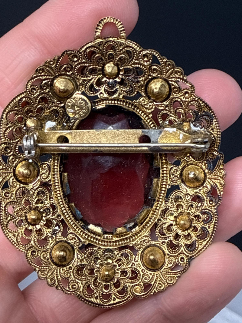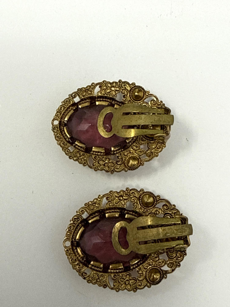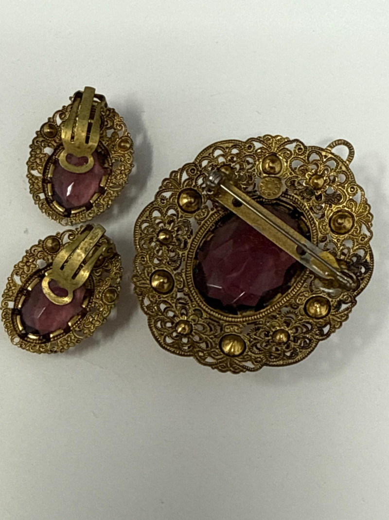 Lot # 52 - Vintage West Germany Burgundy Brooch & Clip-On Earring Set