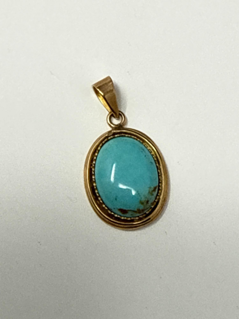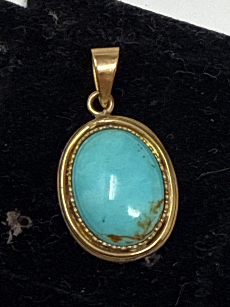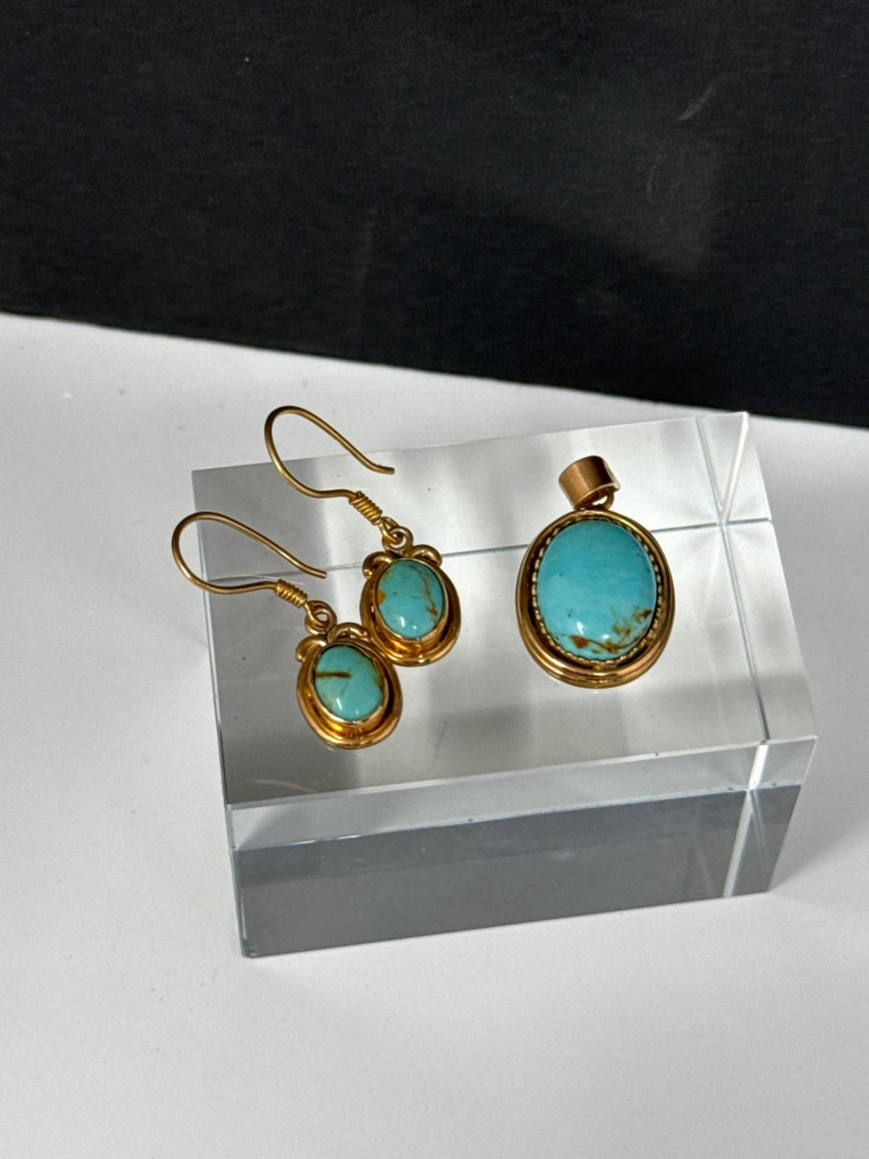 Lot # 87 - Turquoise & 18k Pendant w/ Earrings