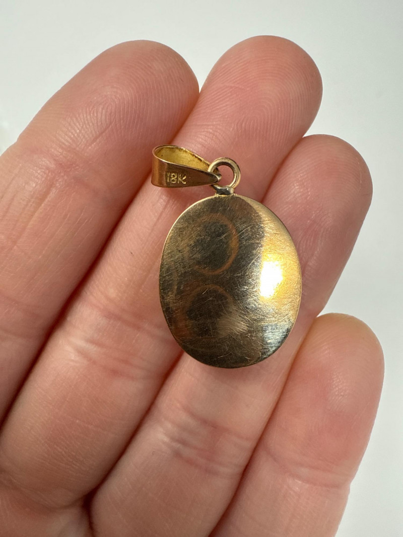 Pendant- 1 1/8” L (marked 18K) Earrings- 1 1/4” L (unmarked)