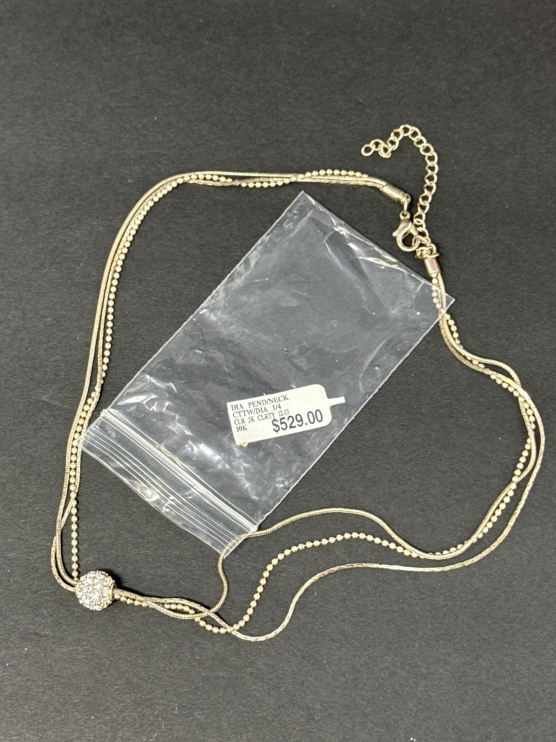Lot # 184 - 1/4 Diamond 10k Gold Pendant Necklace