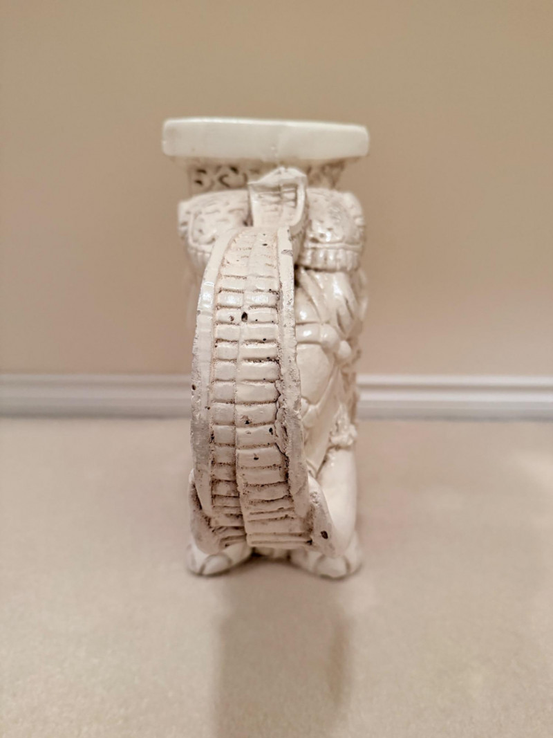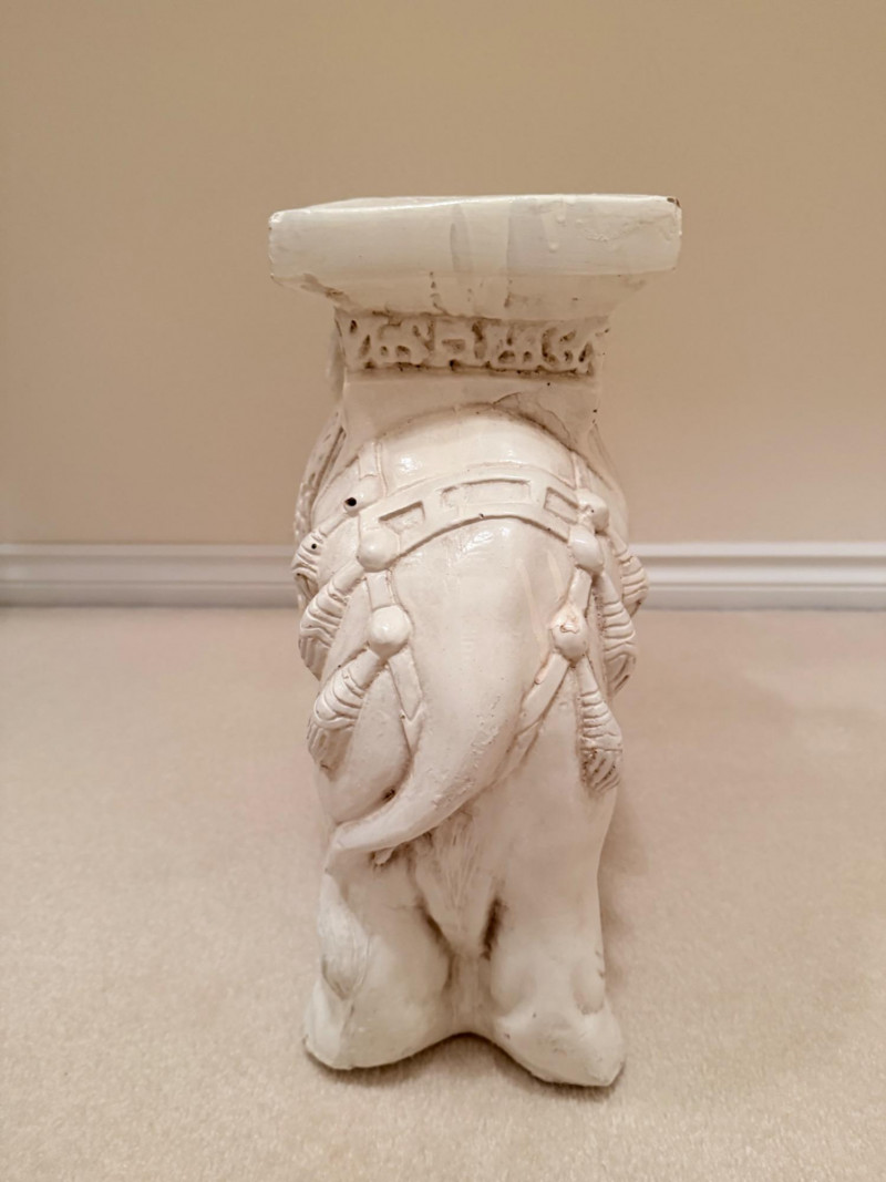 Lot # 5 - Decorative Elephant Sculpture Pedestal – White Intricate Glaze