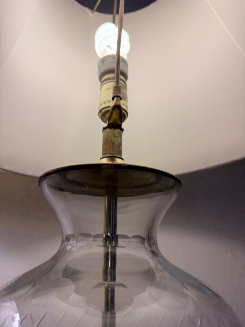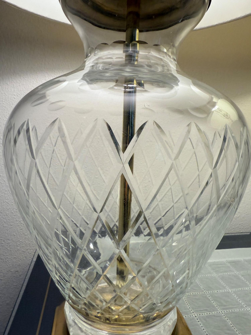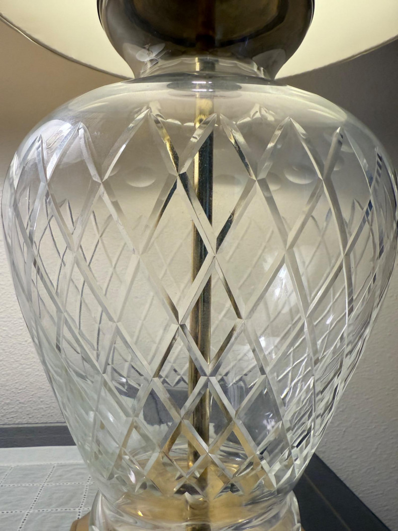 Lot # 15 - Pair of Cut Glass Table Lamps with Brass Base