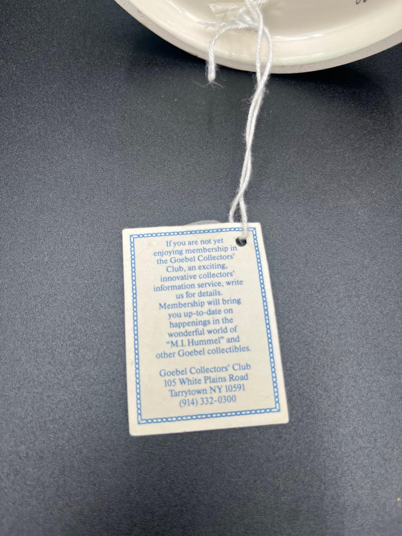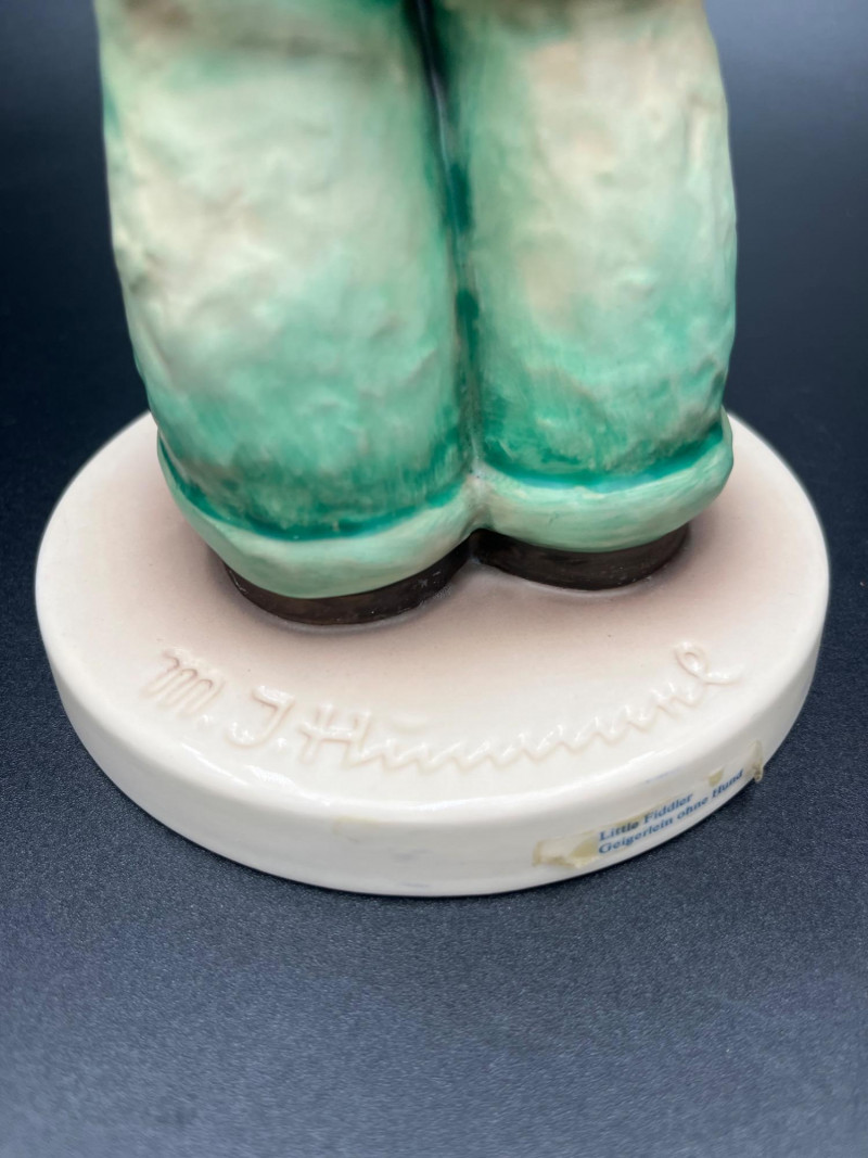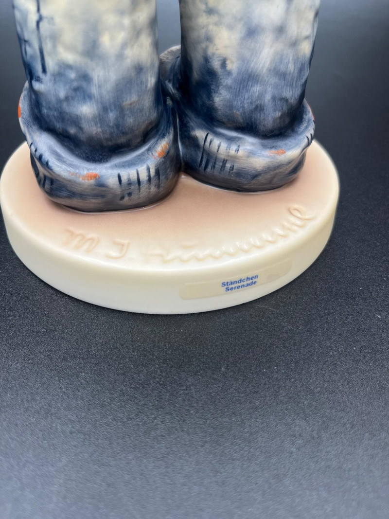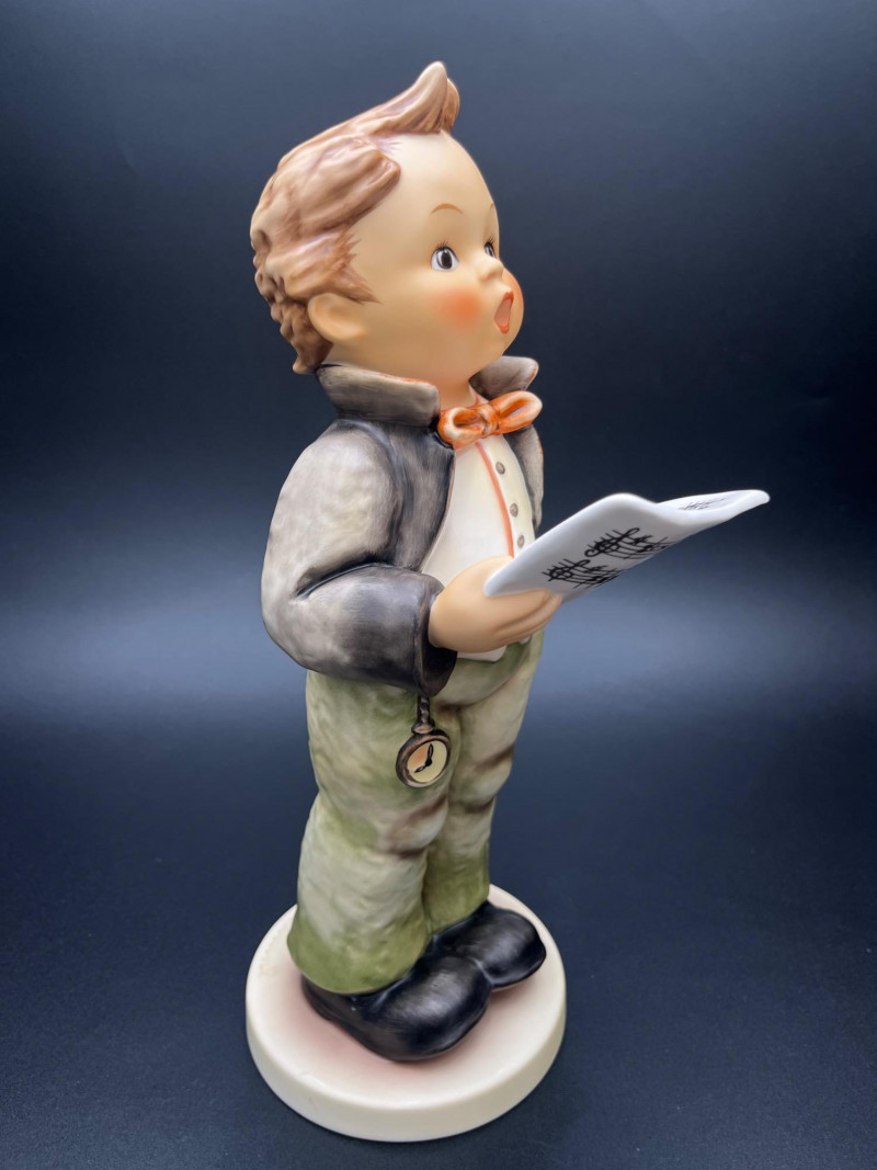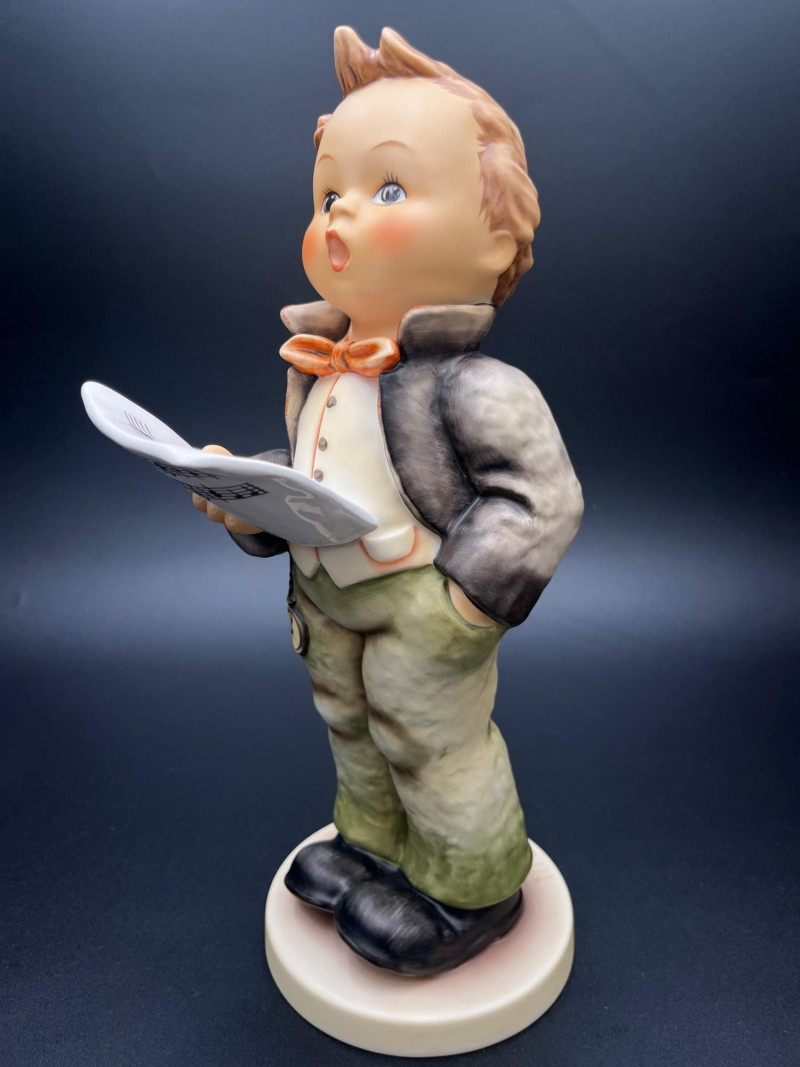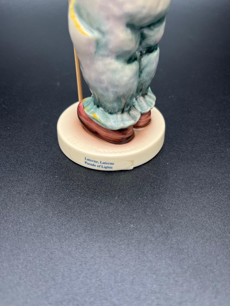 Goebel Hummel Figurine Collection A group of nine porcelain figurines crafted by Goebel in Germany, each depicting children in various poses with musical instruments, lanterns, or travel gear. The figures include scenes of performance, exploration, and storytelling. Most are signed and feature Goebel markings at the base, with some accompanied by certificates of authenticity. The figures vary in posture and detail, capturing moments such as playing a trumpet, reading sheet music, or pointing a lantern. Measurements: