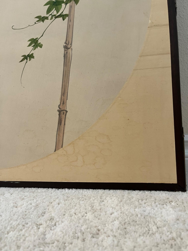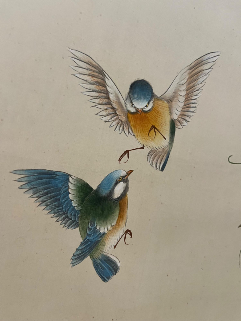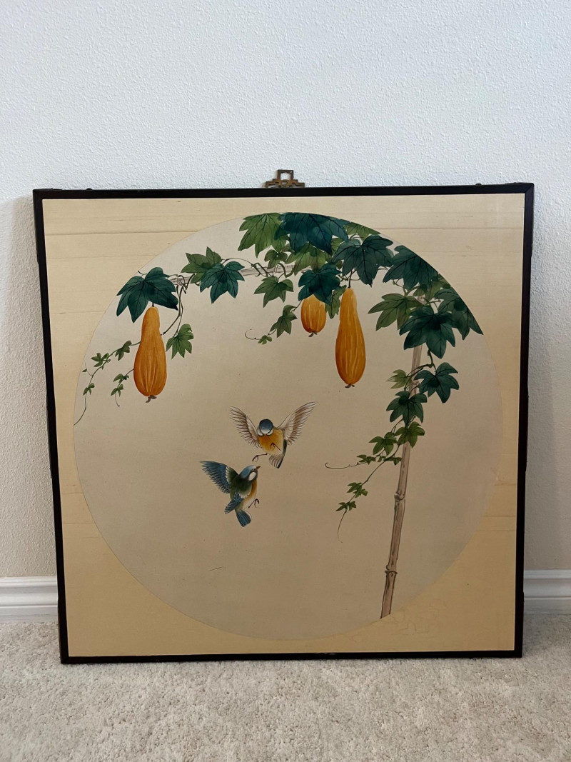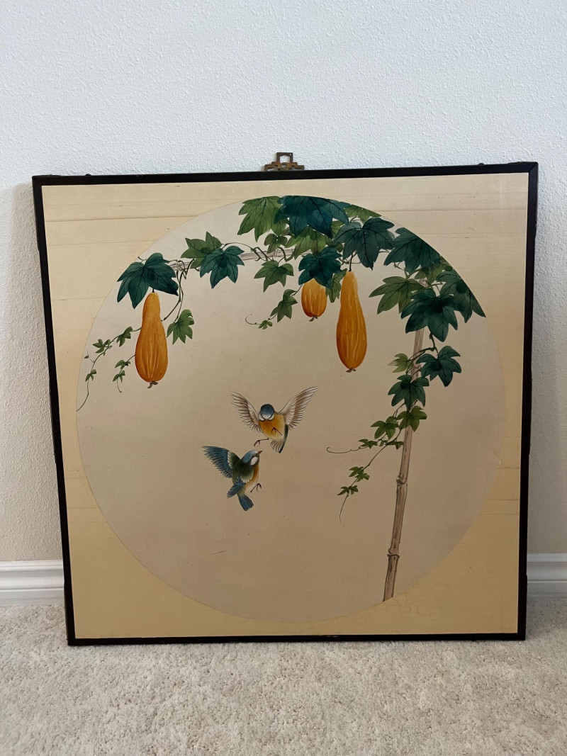 Lot # 38 - Framed Japanese Silk Painting – Birds, Gourds, and Vine