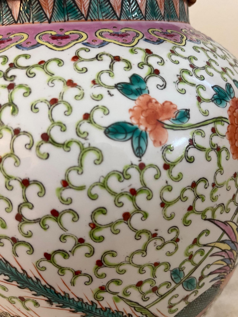 Lot # 40 - Vintage Chinese Lidded Porcelain Jar with Dragon and Phoenix