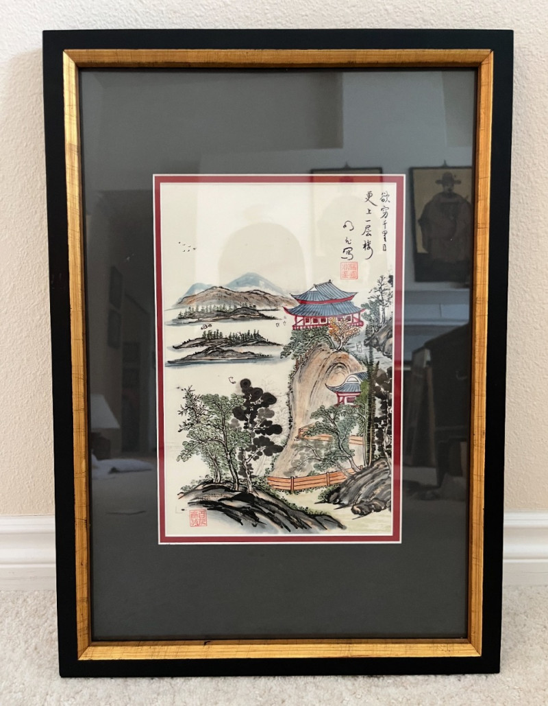 Lot # 45 - Framed Chinese Landscape Painting by Gin Ku – 20.5" H