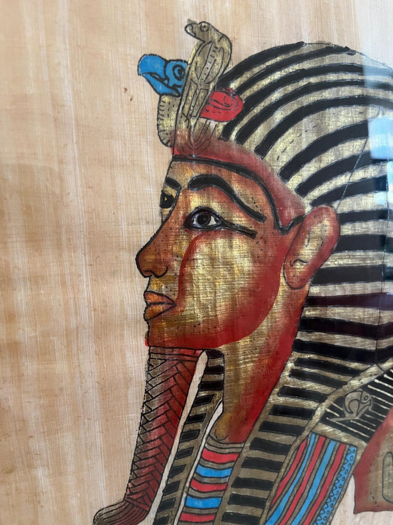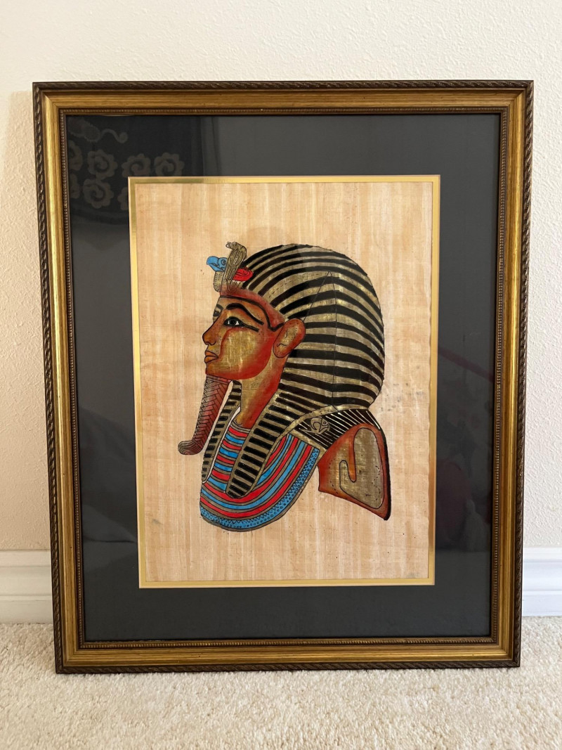 Lot # 50 - Egyptian Papyrus Painting – Framed Art of Pharaoh