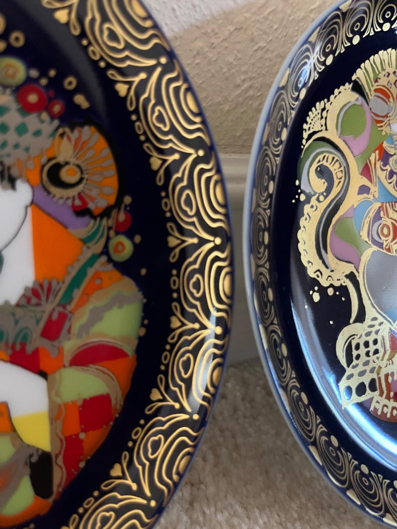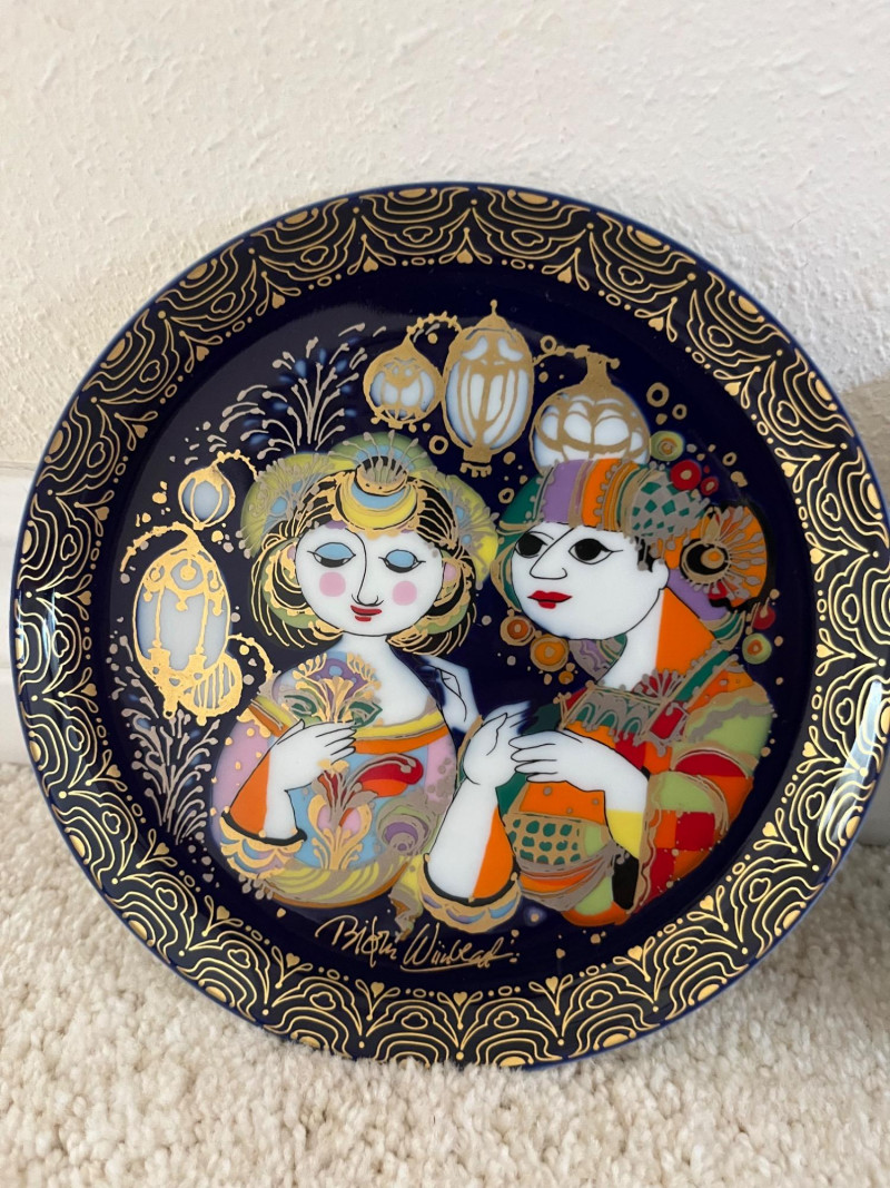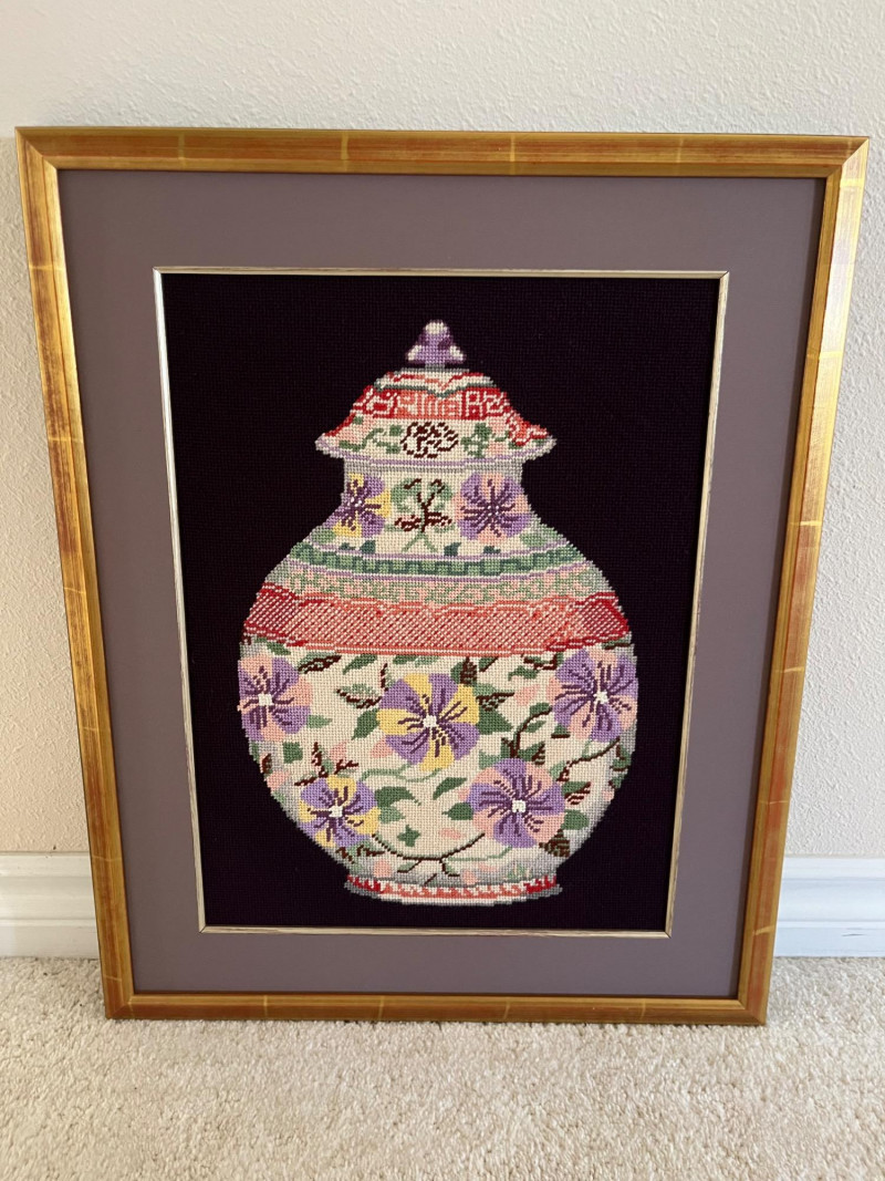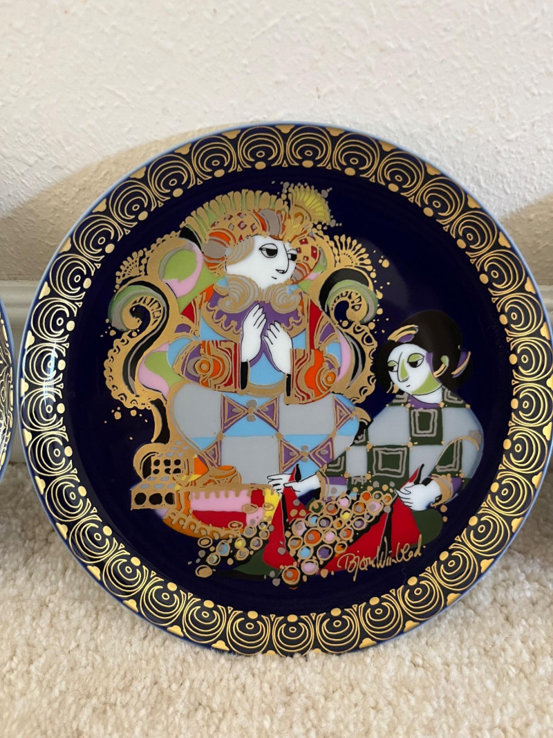 Lot # 51 - Bjorn Wiinblad Rosenthal Plates Framed with Ginger Jar Cross-Stitch