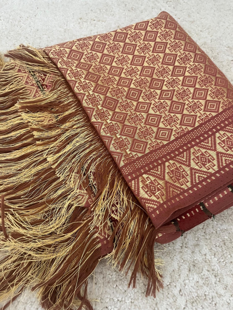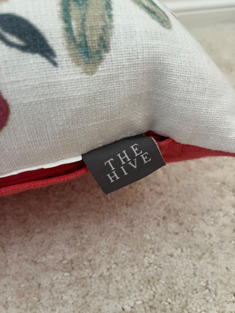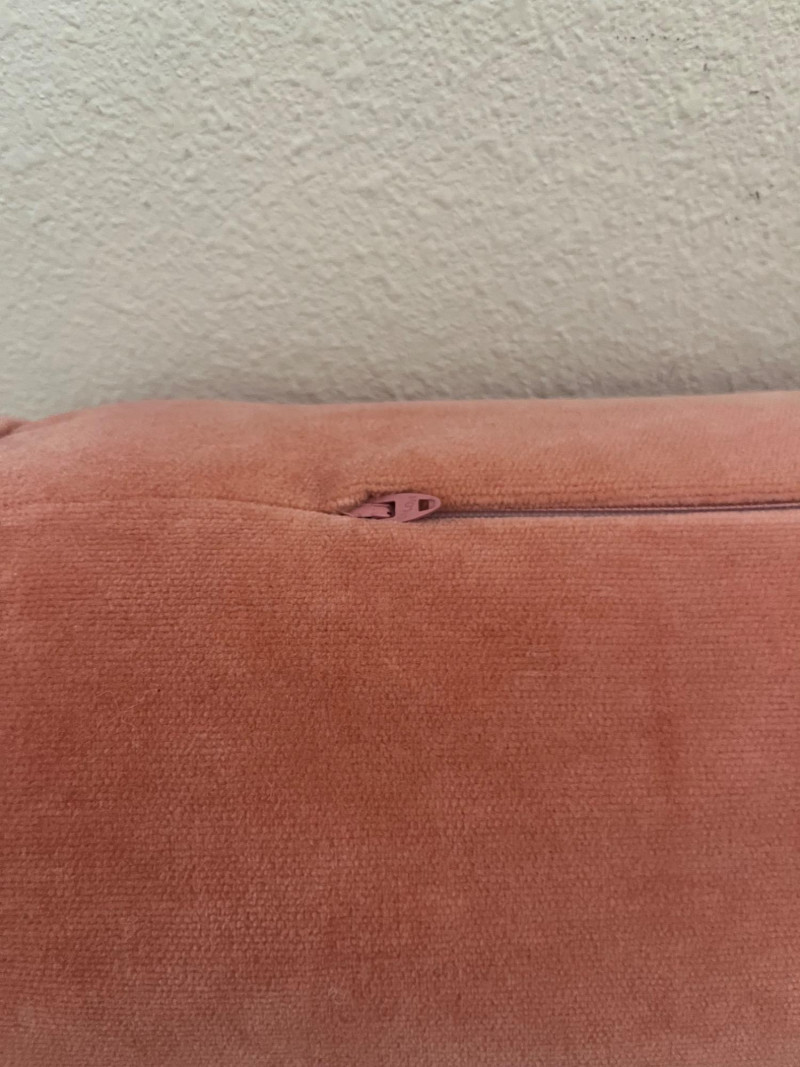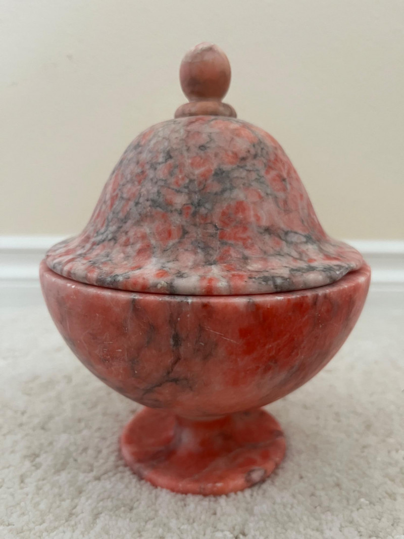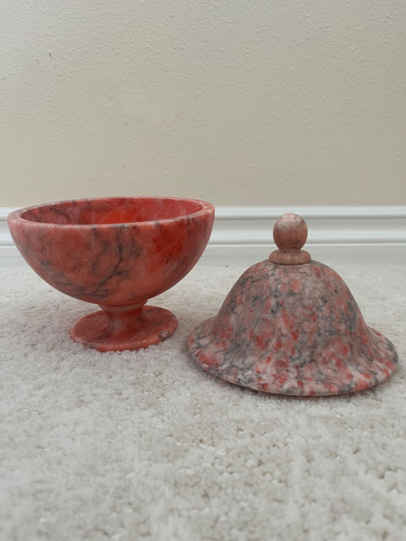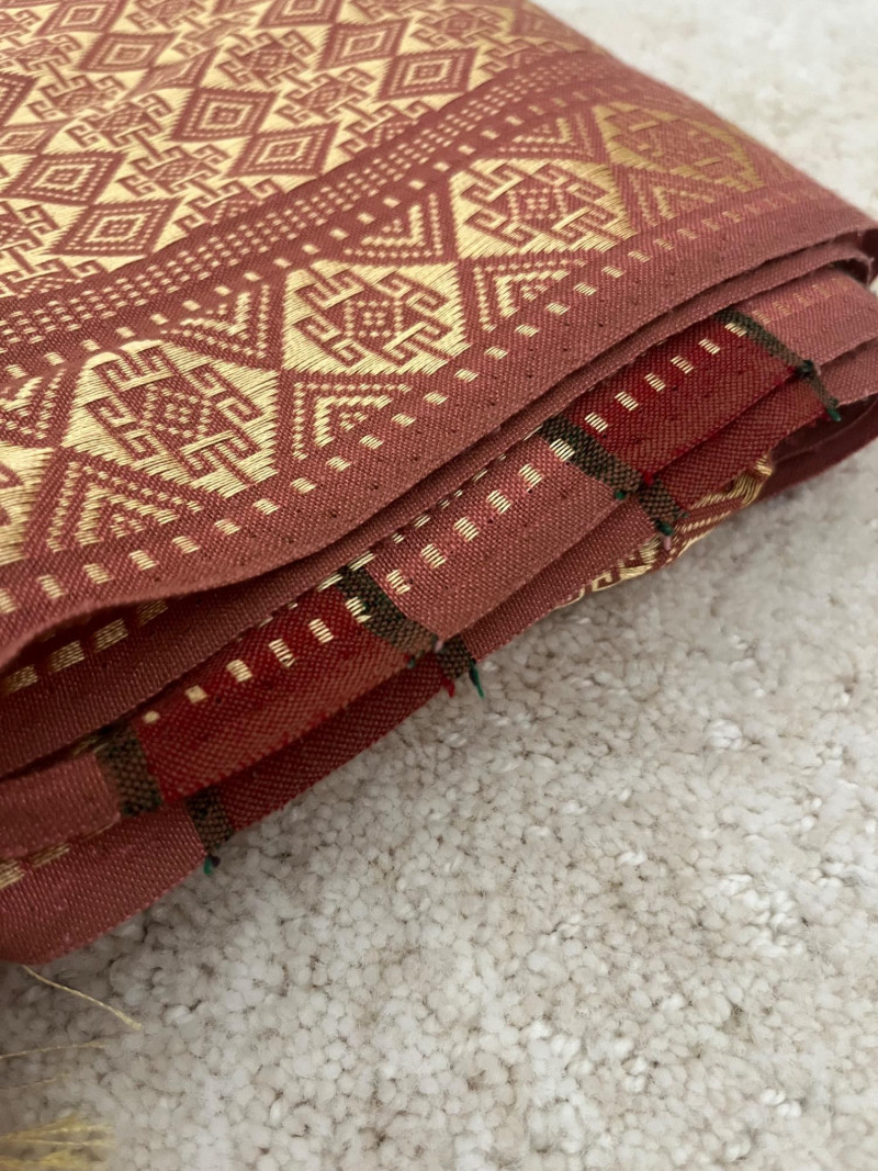 Textile and Decor Ensemble with Stone Jar A collection of soft furnishings and decor featuring coordinated tones and varied textures. Included are a long rectangular pillow with floral embroidery, a cylindrical pillow with tassels on both ends, and a square pillow with an elephant tapestry panel framed by solid fabric. A loosely woven pink blanket with fringe is paired with a second textile displaying geometric patterns and long fringe. Completing the group is a lidded stone jar formed with a footed base, rounded bowl, and domed lid topped with a knob finial. Dimensions: Long floral pillow: 25" W x 13" D Cylinder pillow (excluding tassels): 16" W x 6.75" diameter Elephant pillow: 16" H x 16" W Pink blanket: 79" L x 50" W Patterned textile with fringe: 75.25" L x 39.5" W Lidded stone jar: 8" H x 5.5" diam