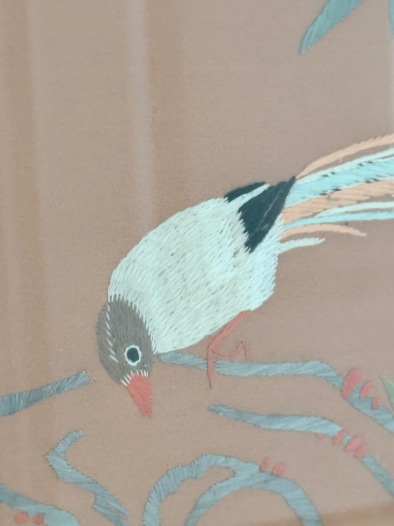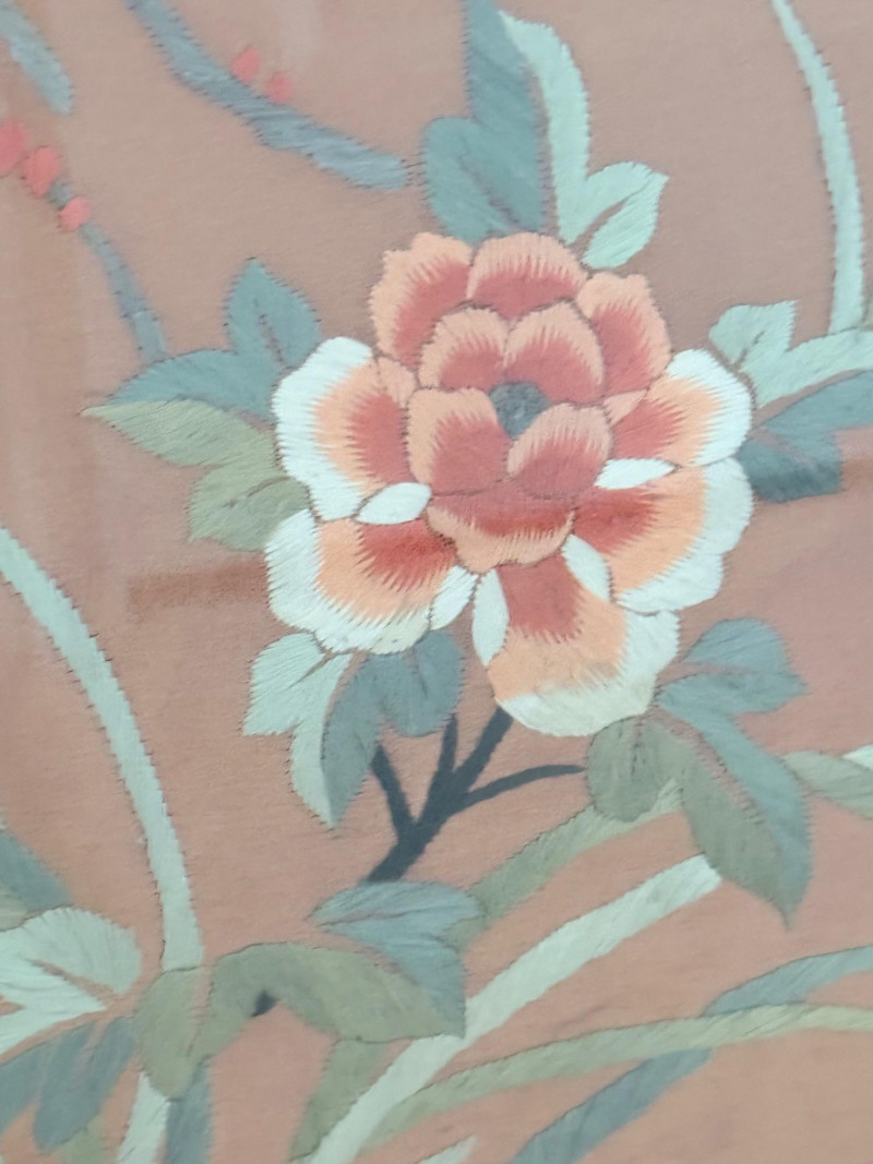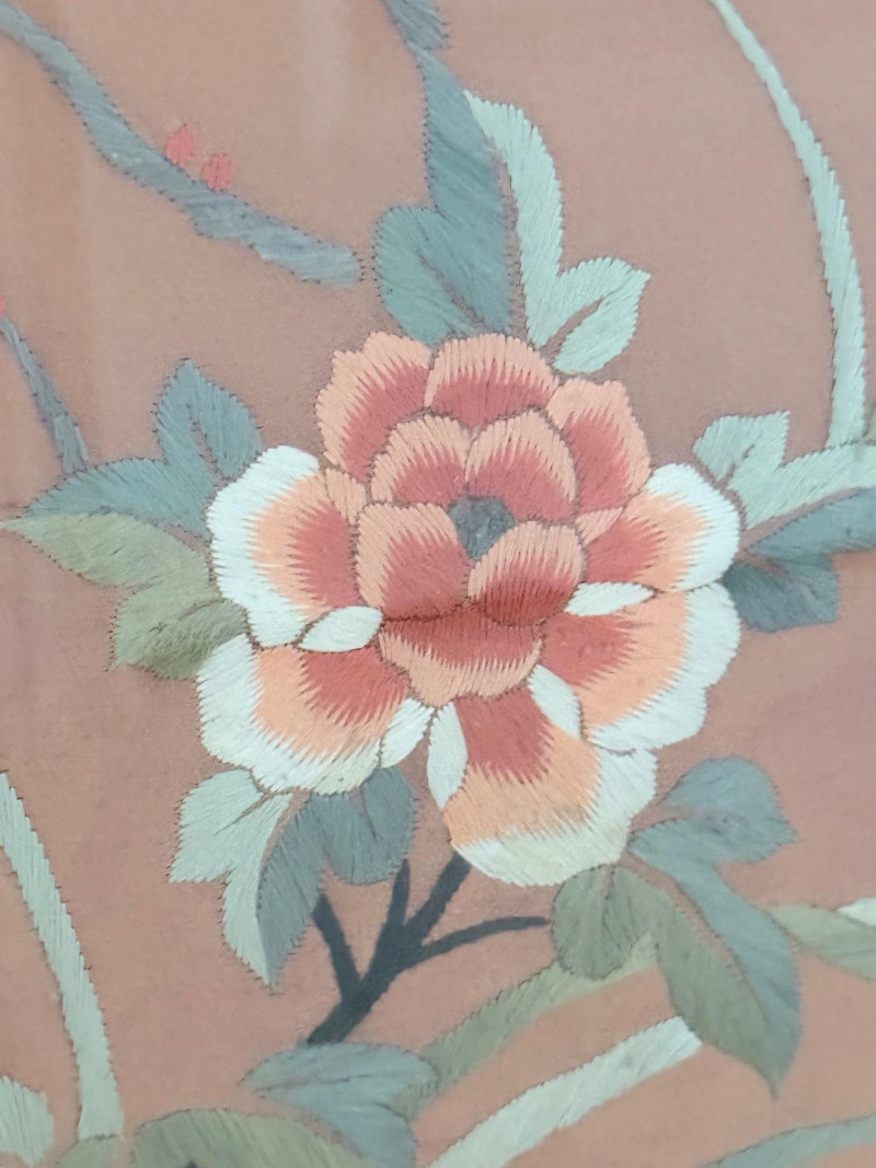 Lot # 88 - Chinese Framed Embroidered Silk Bird and Peonies