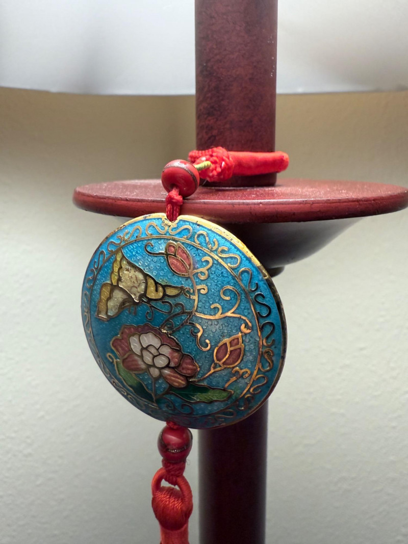 Lot # 100 - Wooden Table Lamp with Cloisonné Ornament