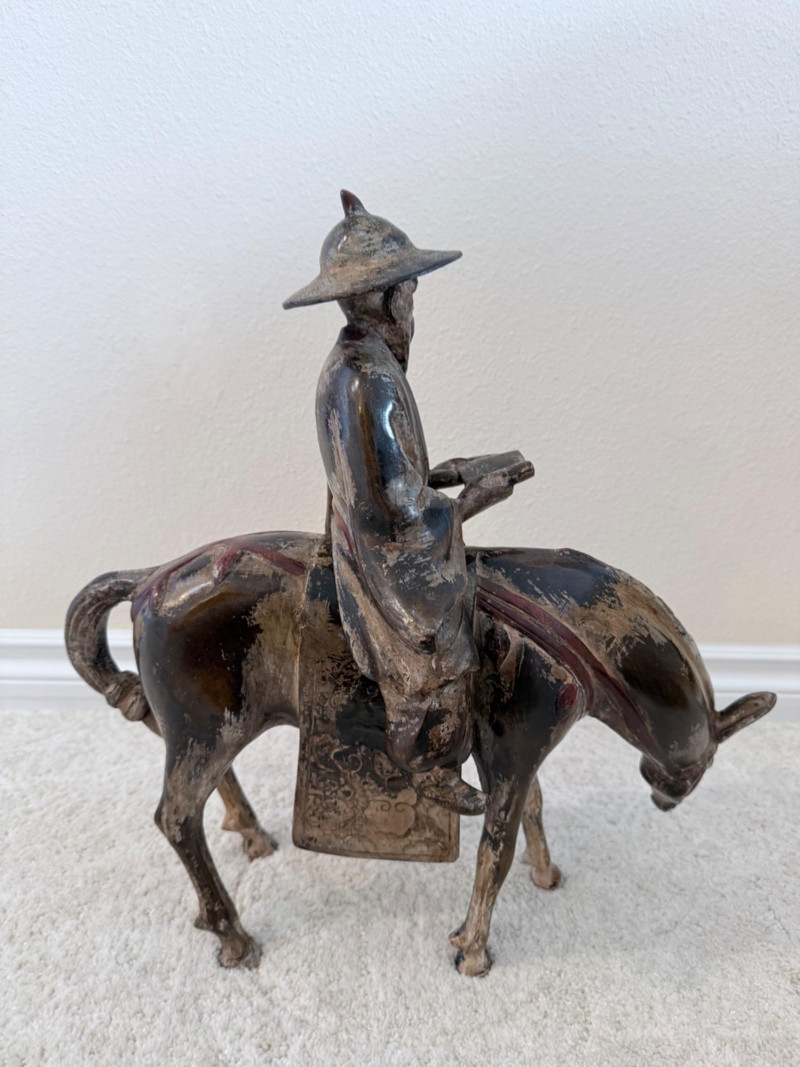 Lot # 103 - Vintage Chinese Metal Sculpture Figure on Horseback with Scroll