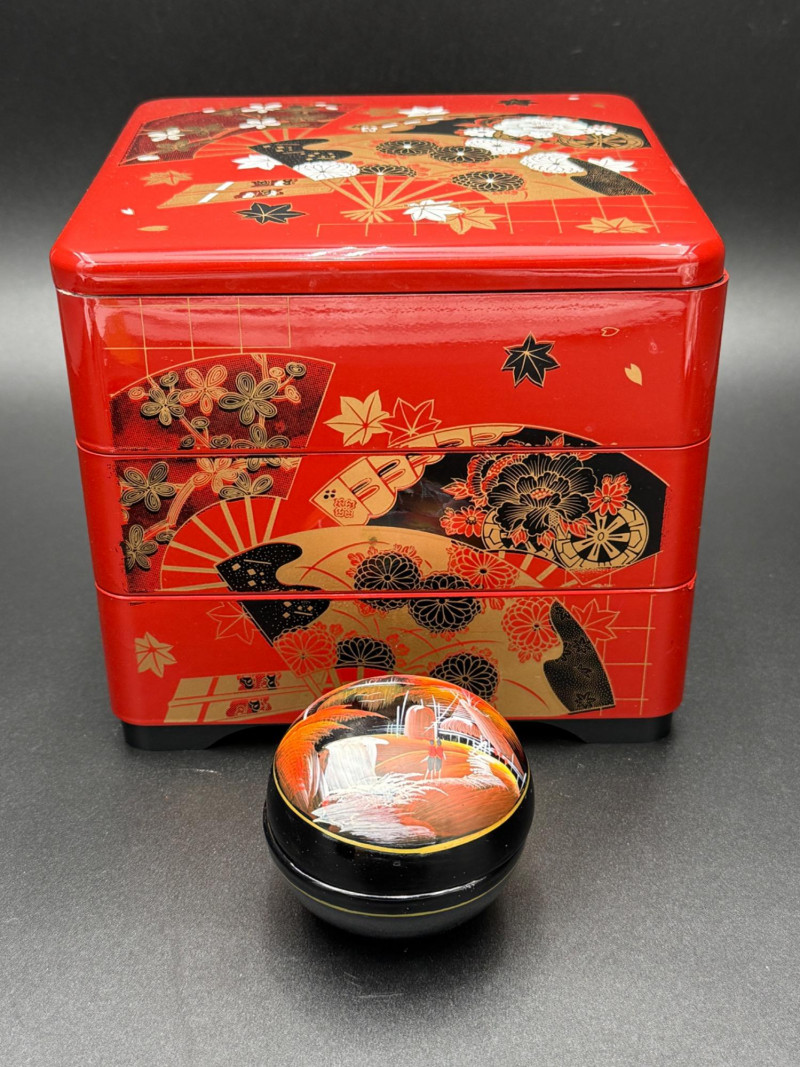 Lot # 127 - Japanese Lacquered Jyubako Bento Box with Small Trinket Box