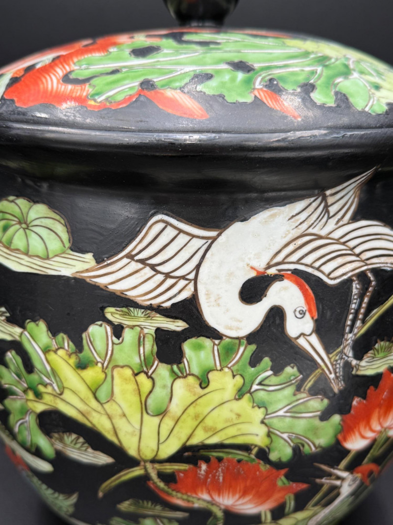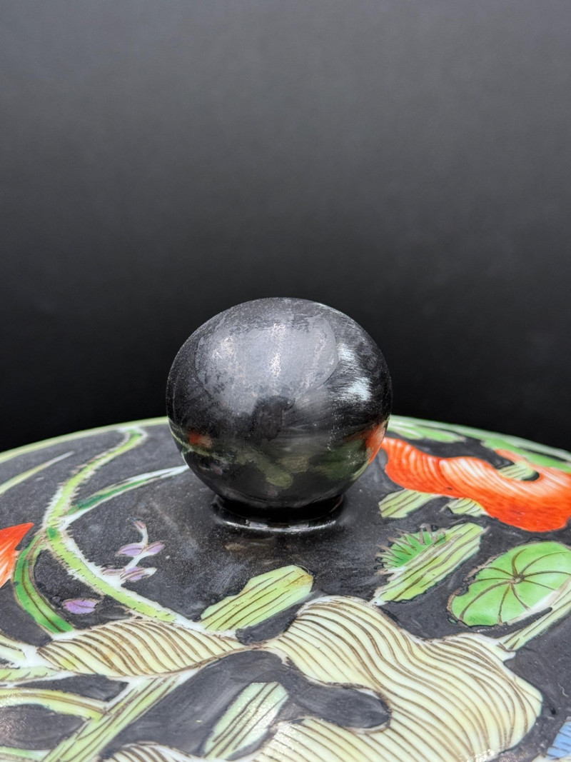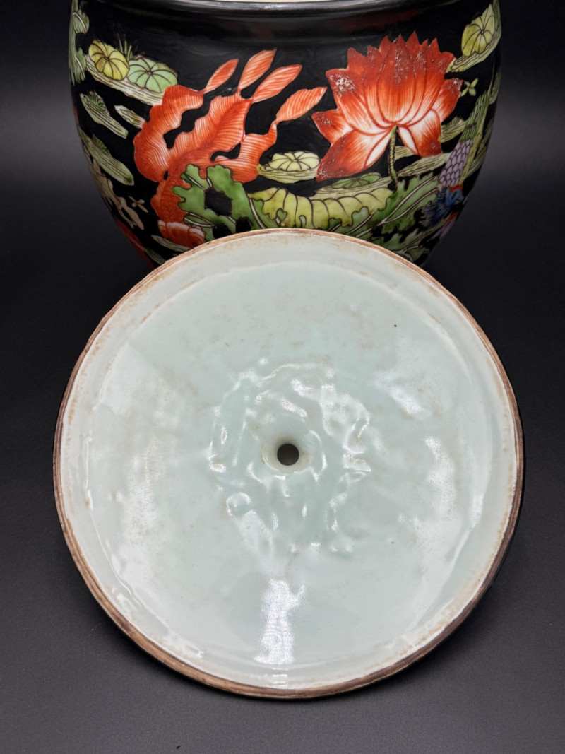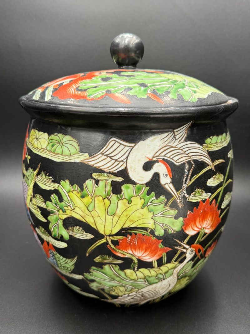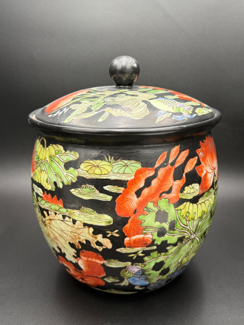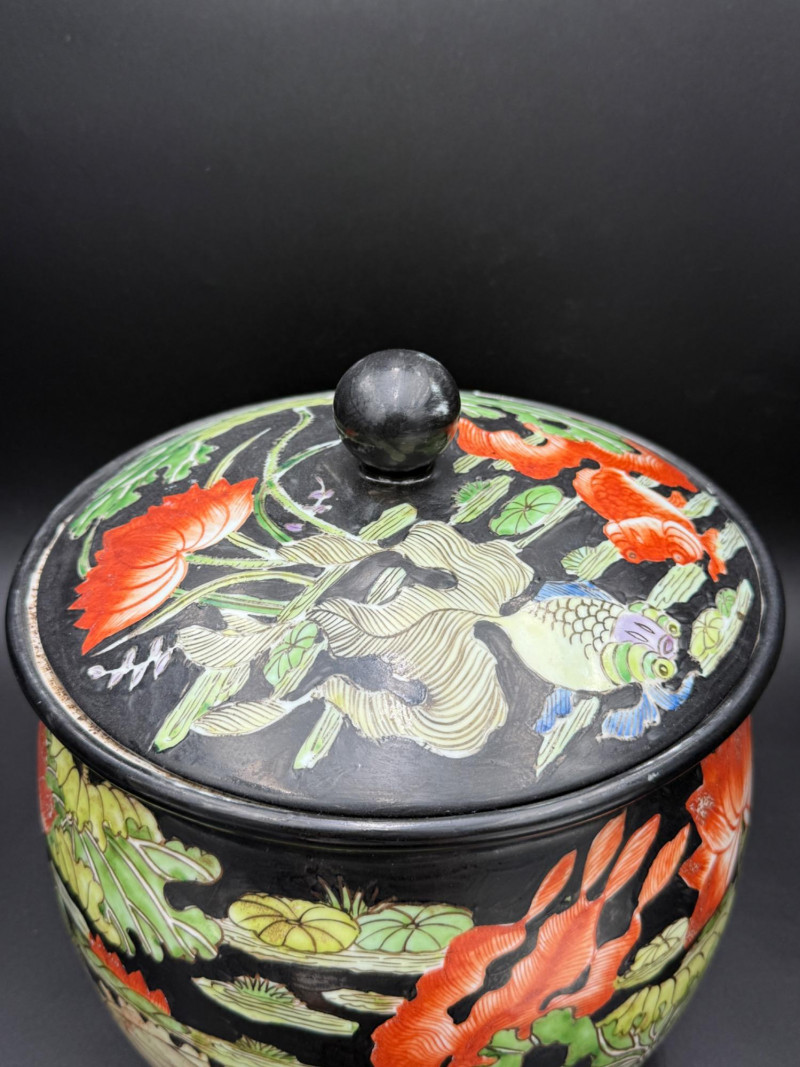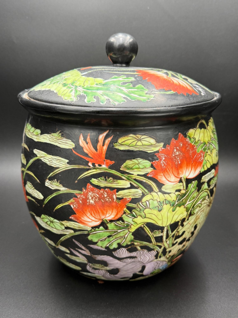 Lot # 131 - Chinese Lidded Jar with Koi Fish and Lotus Pond Design