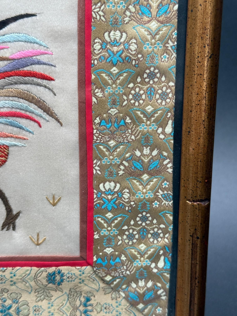 Lot # 142 - Embroidered Rooster Frame, Chinese Hua Rong Plate, and Duck Figure