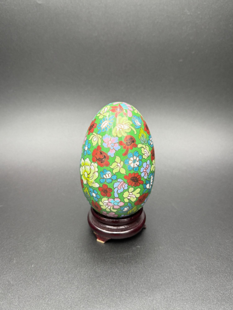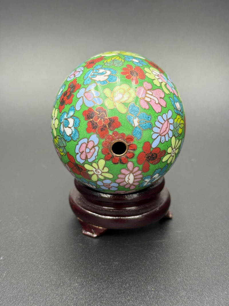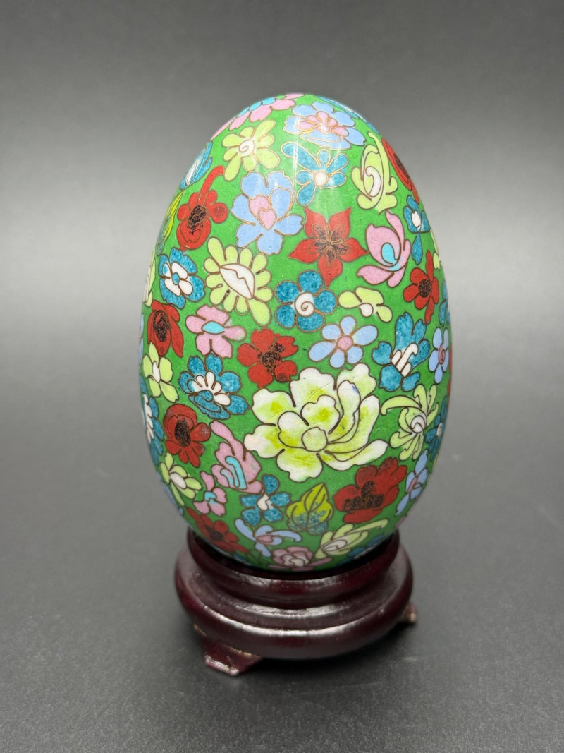 Lot # 165 - Chinese Porcelain Ginger Jars and Cloisonné Egg with Wooden Stand
