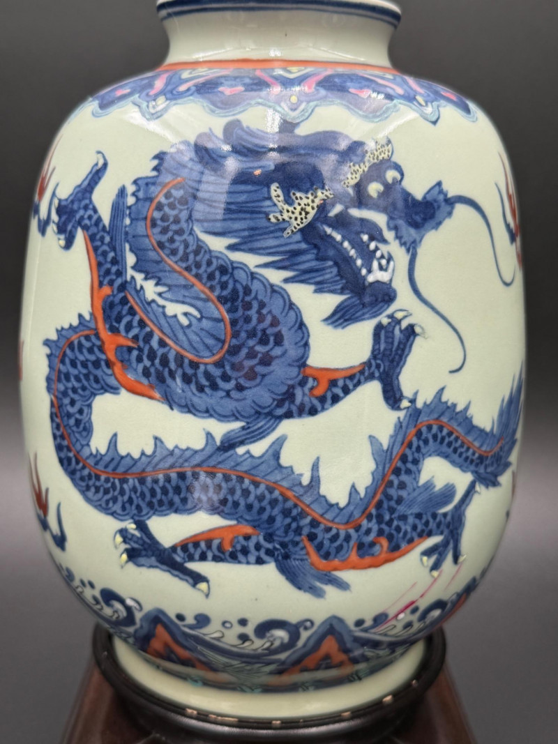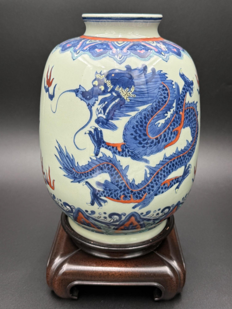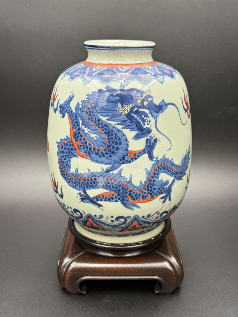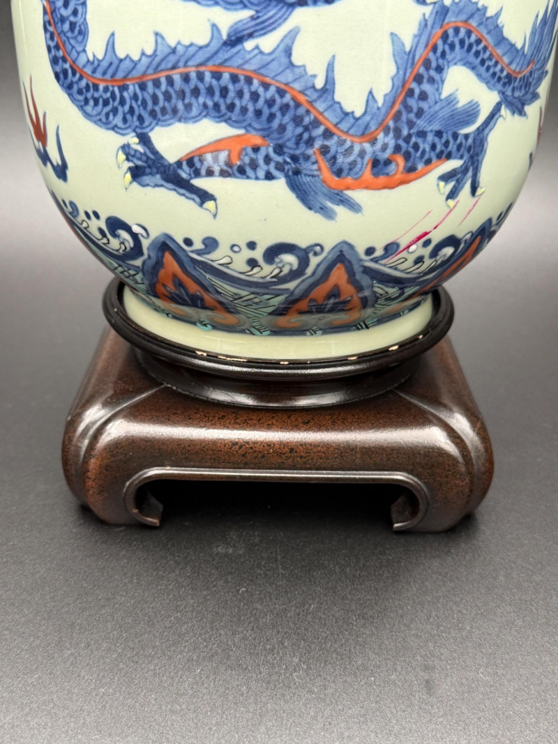Lot # 168 - Chinese Porcelain Dragon Jar with Stand