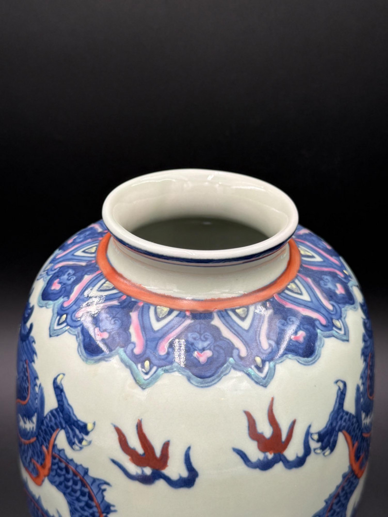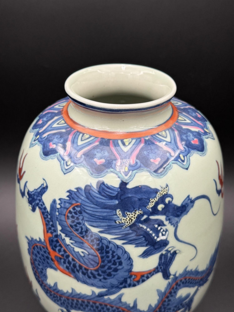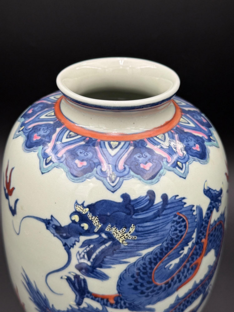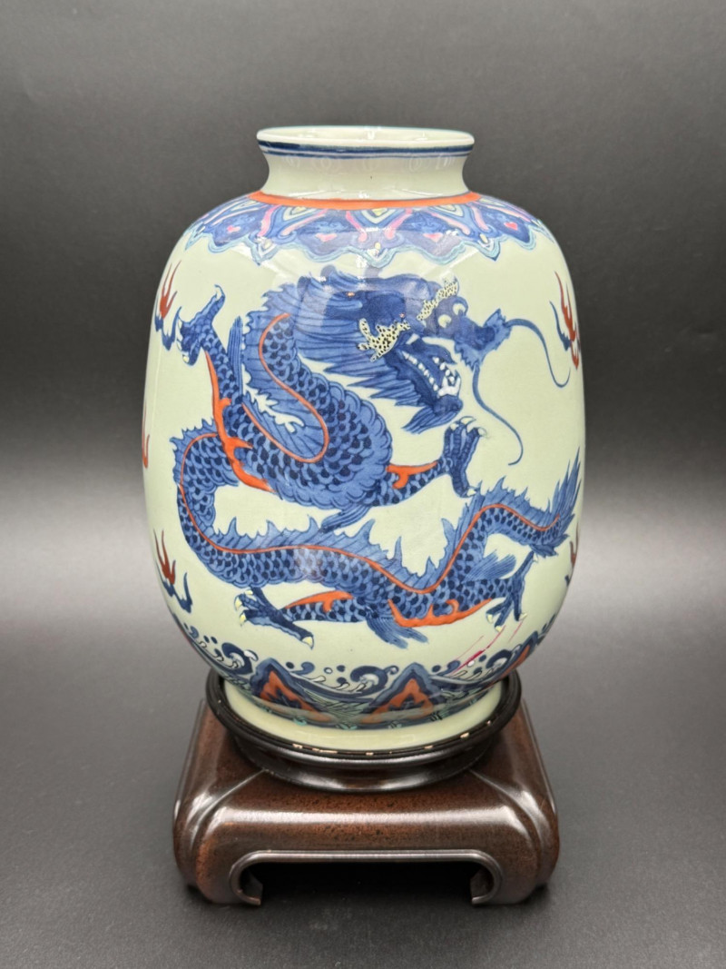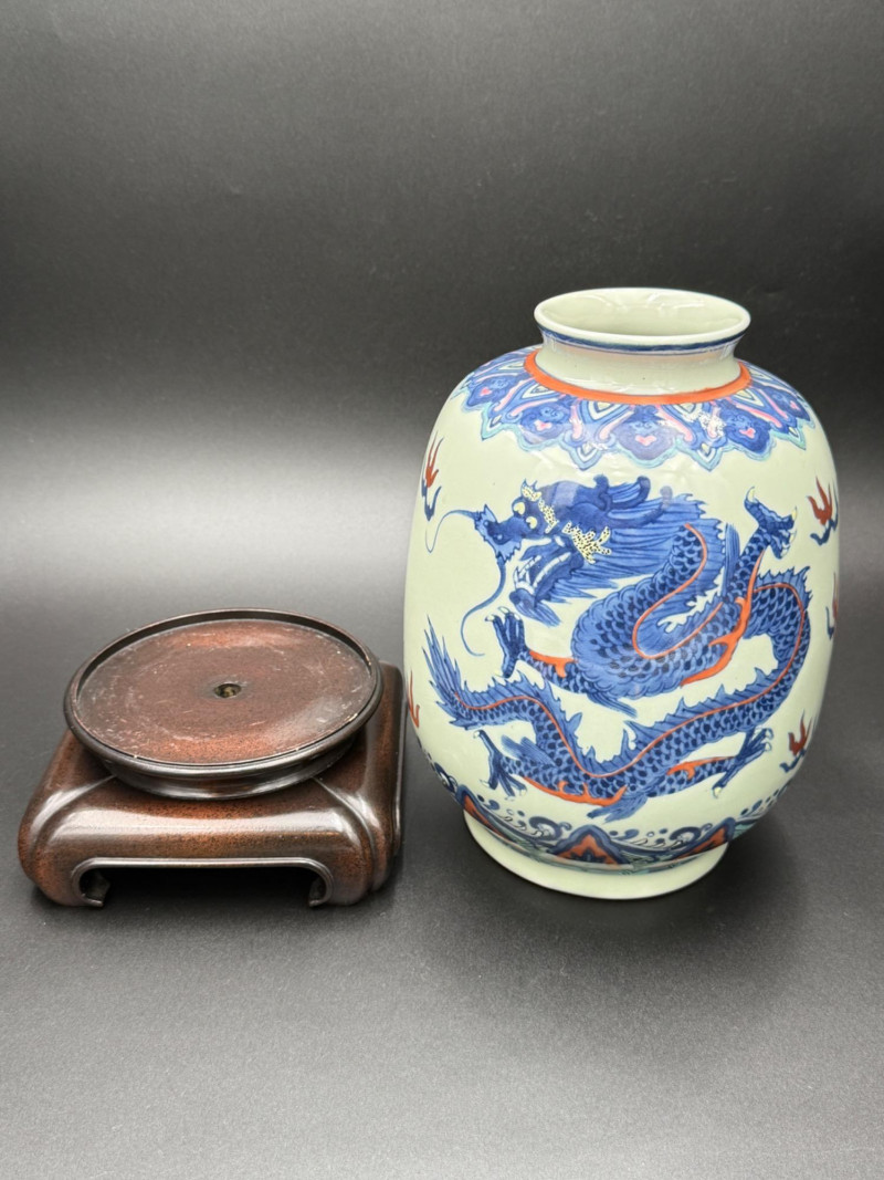 Lot # 168 - Chinese Porcelain Dragon Jar with Stand