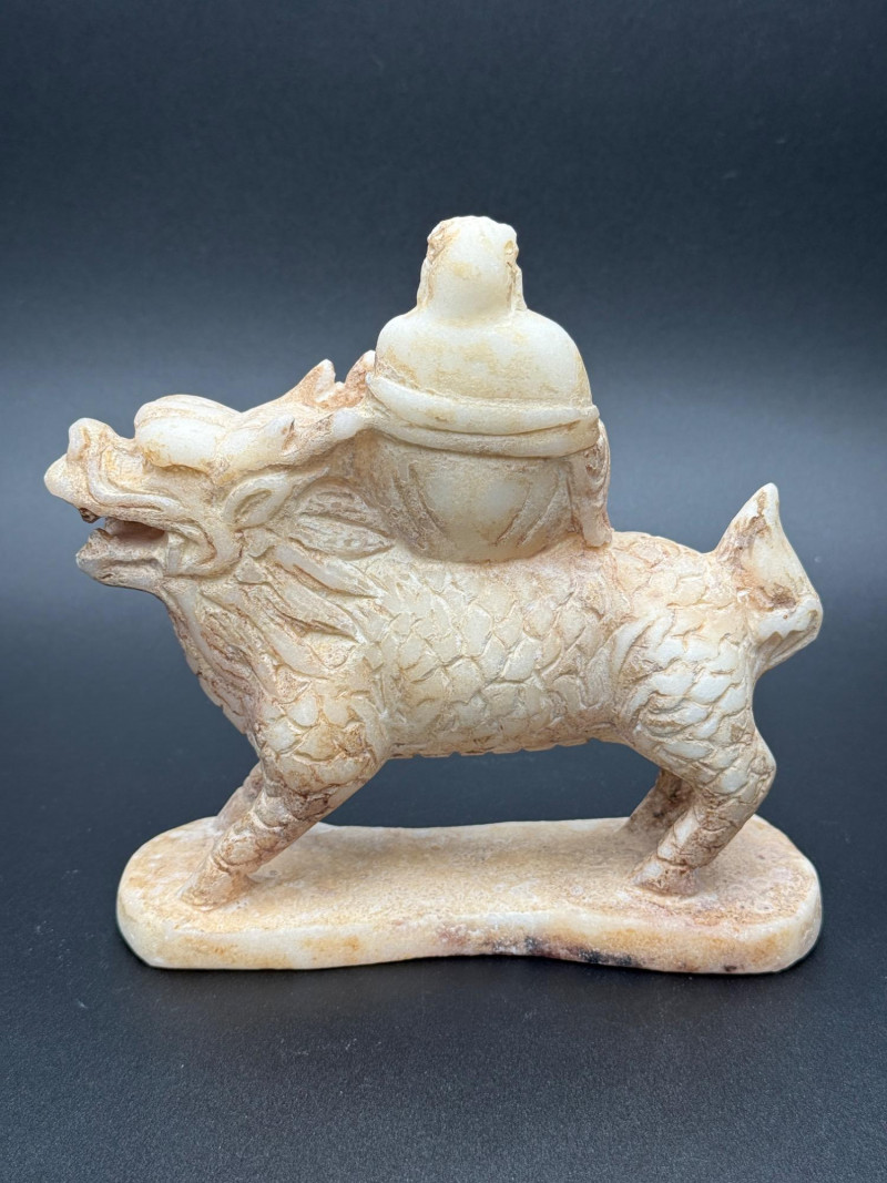 Lot # 175 - Soapstone Figure of Seated Figure on Mythical Beast