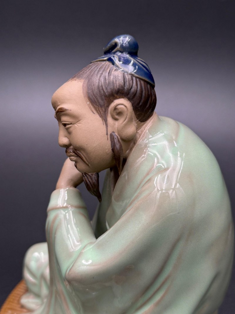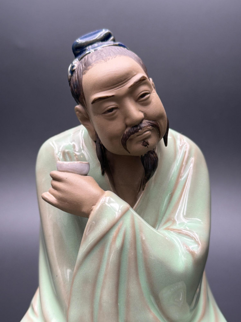 Lot # 91 - Chinese Mudman Figurine Seated with Teacup