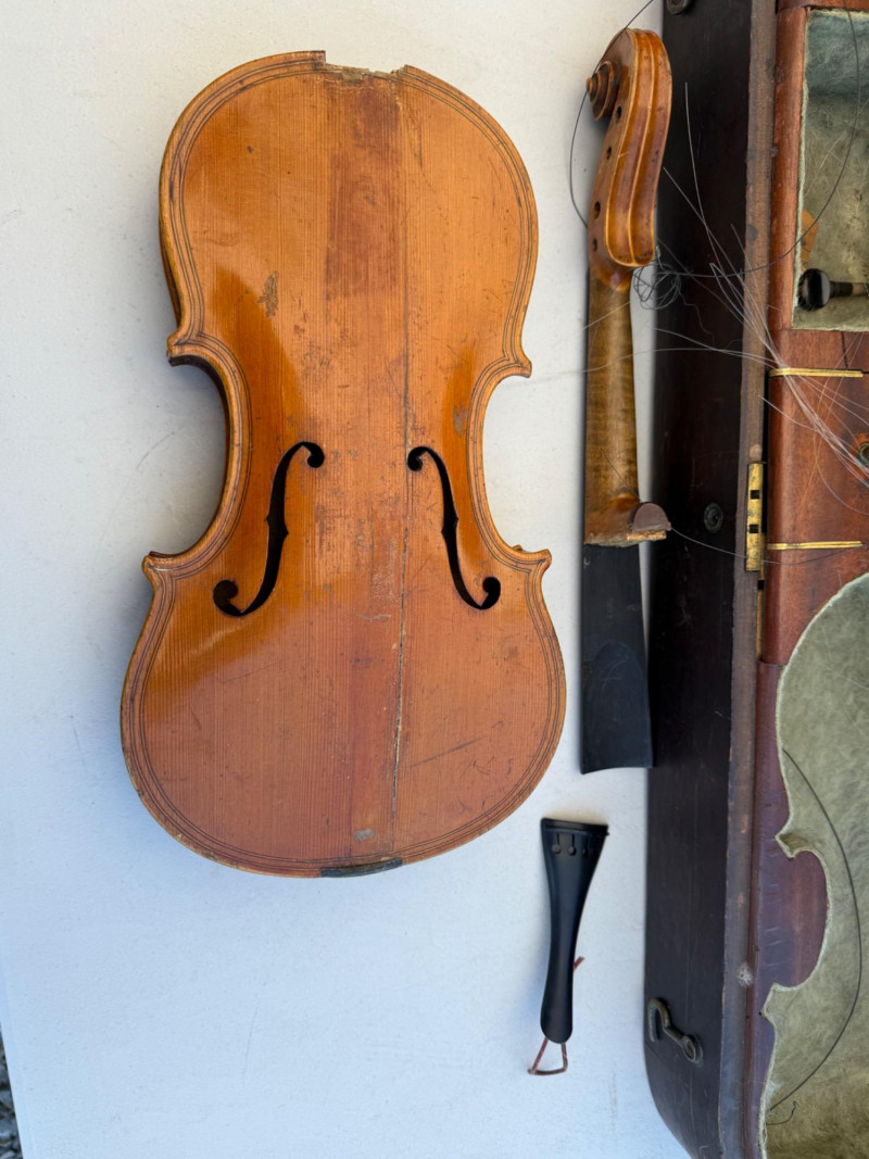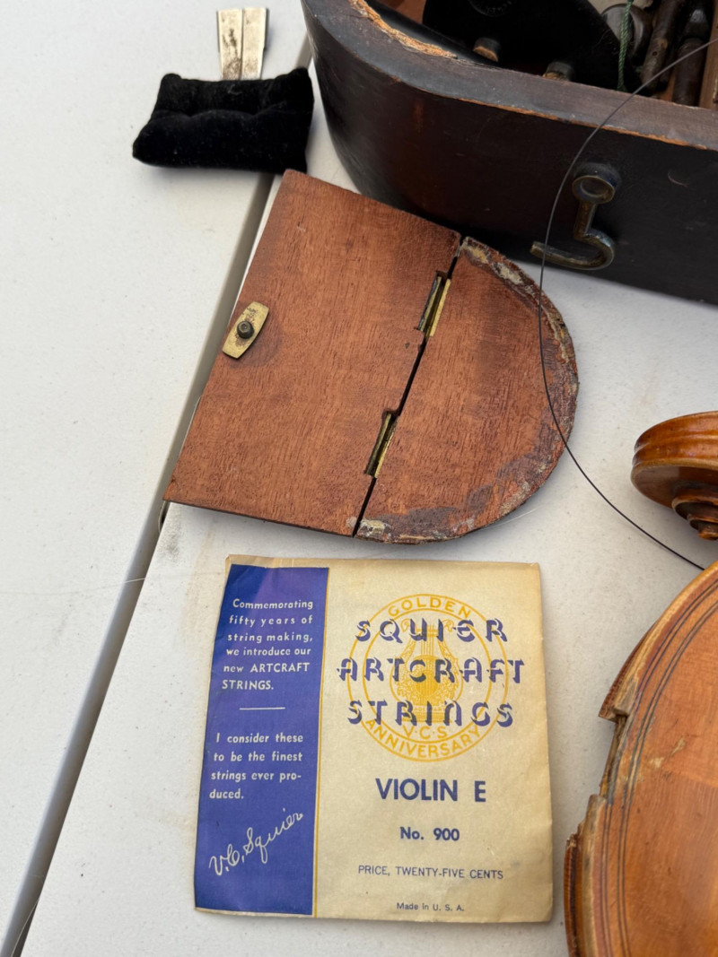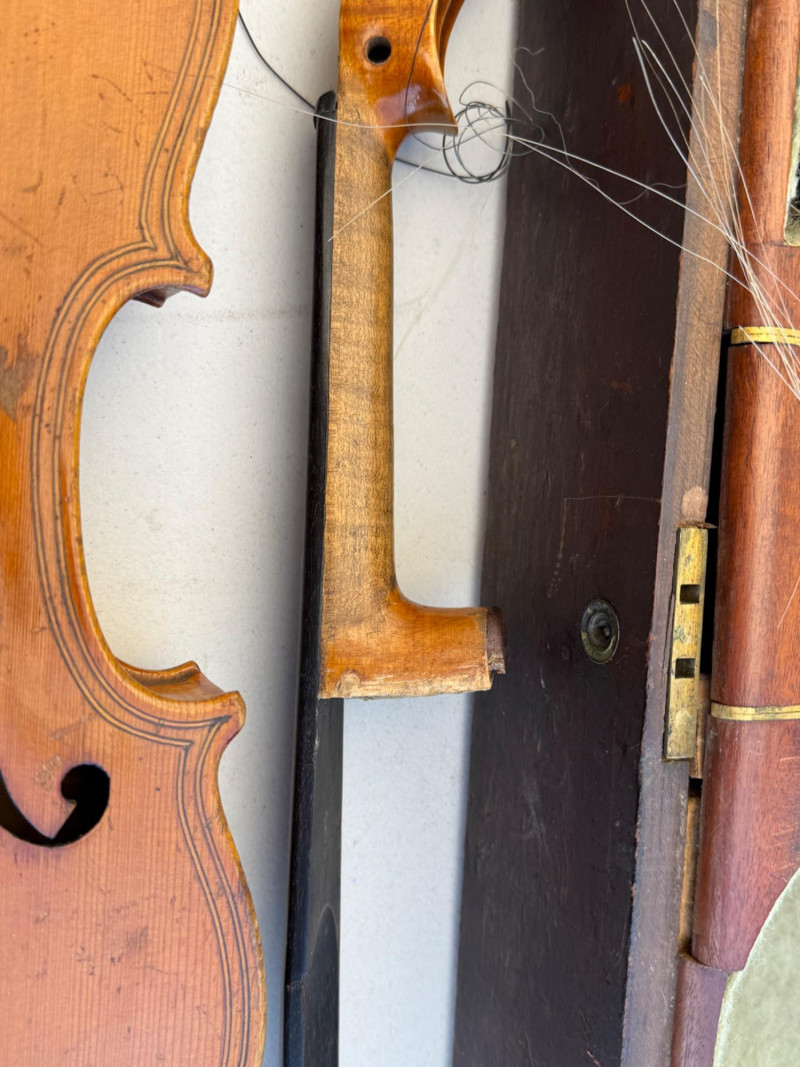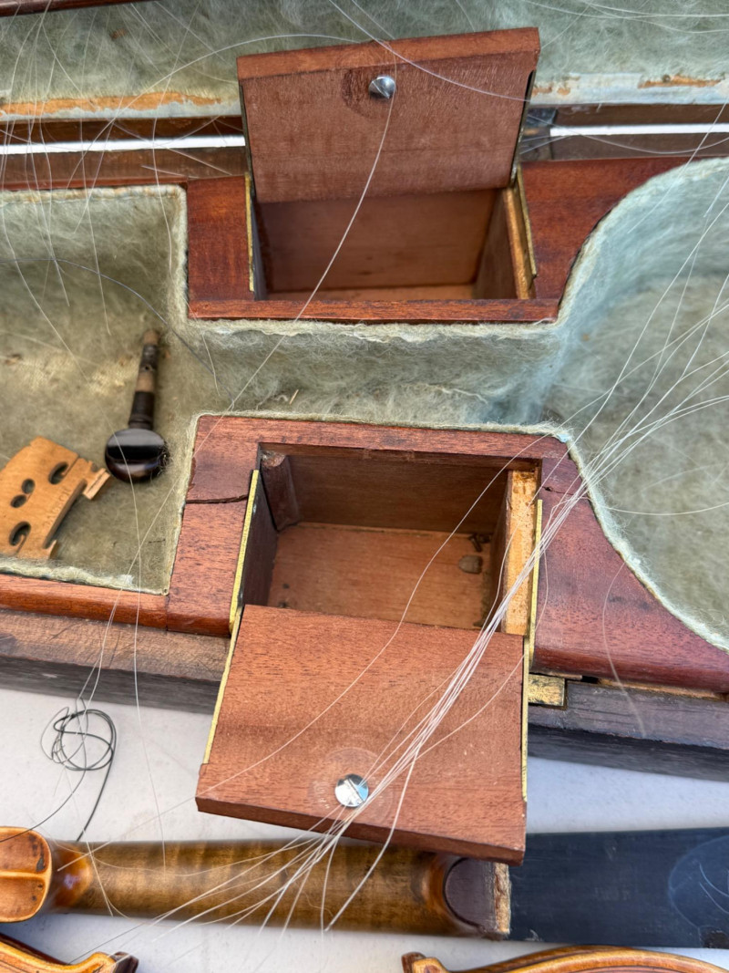 Lot # 30 - Antique Violin in Wood case with 2 Bows
