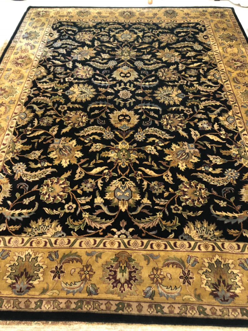 Lot # 1 - Large Handmade Wool Rug – Black & Gold Floral, India