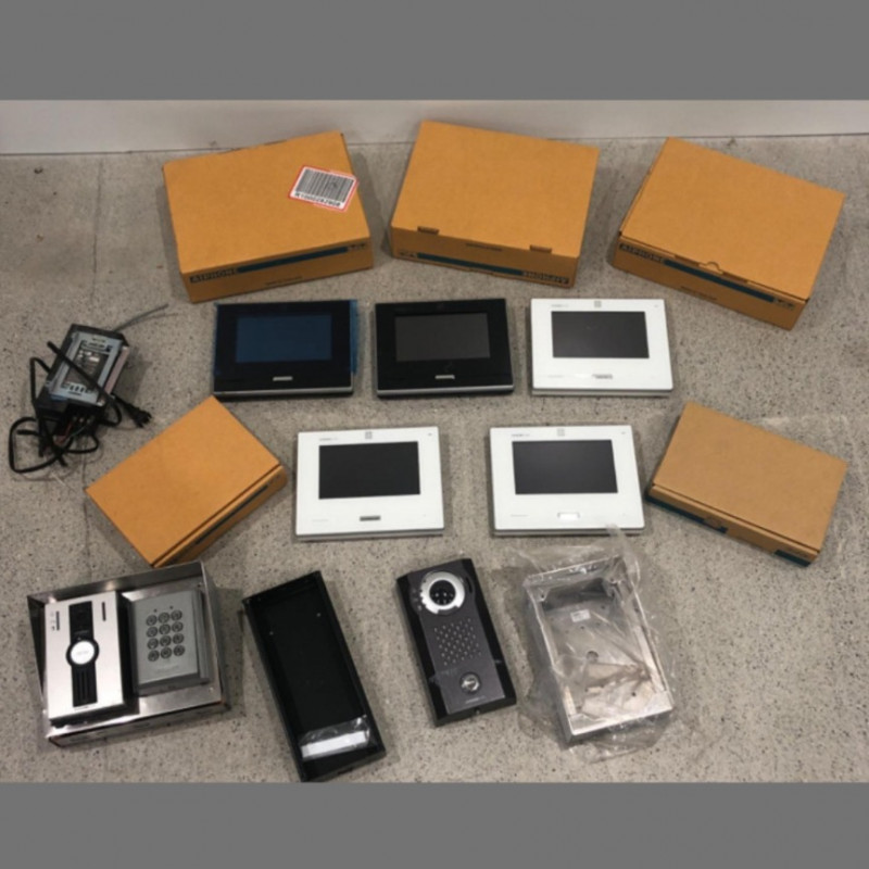 AIPHONE Complete Security System that includes Video Screens & Intercoms & Keypads & Installation Boxes – Brand New, $7,000 Value Large lot of AIPHONE brand security and intercom components, primarily from the IX Series, including video master stations, video door stations, keypads, power supplies, and accessories. Estimated retail value: Over $7,000. Great security system for the home OR business OR church or other locations where you want to control access! Lot Includes: *****3 New In the box white color AIPHONE IX-MV7-W IP Video Master Answering Stations. The IX-MV7-w is an IP video answering station with a 7" LCD touchscreen for the IX | IXG Series system. This station can answer calls from Entrance Stations, Door Stations, and other Answering Stations. It is SIP and ONVIF Profile S compliant and is compatible with all IX | IXG series devices. For complete specifications click here *****5 Never used or installed (3 white and 2 black) AIPHONE IX-MV7-W IP Video Master Answering Stations. The IX-MV7-w is an IP video answering station with a 7" LCD touchscreen for the IX | IXG Series system. This station can answer calls from Entrance Stations, Door Stations, and other Answering Stations. It is SIP and ONVIF Profile S compliant and is compatible with all IX | IXG series devices. For complete specifications click here *****1 Never Used or installed AIPHONE IX-EA Surface Mount IP Video Door Station Intercom. The IX-EA is a one gang surface mount, IP Video Intercom. The IX-EA is SIP compliant, ONVIF ® Profile S compliant, and is capable of streaming video through ONVIF and RTSP. The IX-EA is compatible with all IX | IXG series devices. For complete specifications click here *****2 Never used or installed and one still in the box AIPHONE AC-10S Access Control Keypads. These are vandal resistant access control keypads and are surface mount. For complete specifications click here *****1 New in the box white color AIPHONE JK-1HD Sub Monitor Station. Hands free color video intercom security stations. For complete specifications click here *****1 Never Used or installed AIPHONE IX-DV Video and Intercom Door Station. The IX-DV is a surface mount, vandal resistant, and weather resistant IP Video Intercom, featuring an aluminum die cast cover. The IX-DV is SIP compliant, ONVIF ® Profile S compliant, and is capable of streaming video feeds through RTSP. The IX-DV is compatible with all IX | IXG series devices. For complete specifications click here *****1 Never Used or Installed AIPHONE I.T.E Power Supply PS-1820. 18V DC Power Supply, 2A, UL Listed. For complete specifications click here *****1 Never Used or Installed AIPHONE SBX-DVF Stainless Steel Surface Mount Box. The SBX-DVF is an 18-Gauge stainless steel enclosure designed for surface mounting the JO-DVF, JP-DVF, and JP-DVF video door stations. For complete specifications click here ******1 Never Used AIPHONE SBX-ACE Stainless Steel Device Enclosure. The SBX-ACE is a surface mount stainless steel enclosure designed for mounting an Aiphone 1-gang surface mount door station and an access control device side by side. This enclosure can be used as a stand-alone box for mounting any card or proximity reader, or other device requiring a hooded outdoor box. The SBX-ACE includes room inside for wiring and is weather resistant. For complete specifications click here *****1 Never Used or Installed AIPHONE black metal Surface Mount Box. For Jf-Dvf, Jk-Dvf. For complete specifications click here