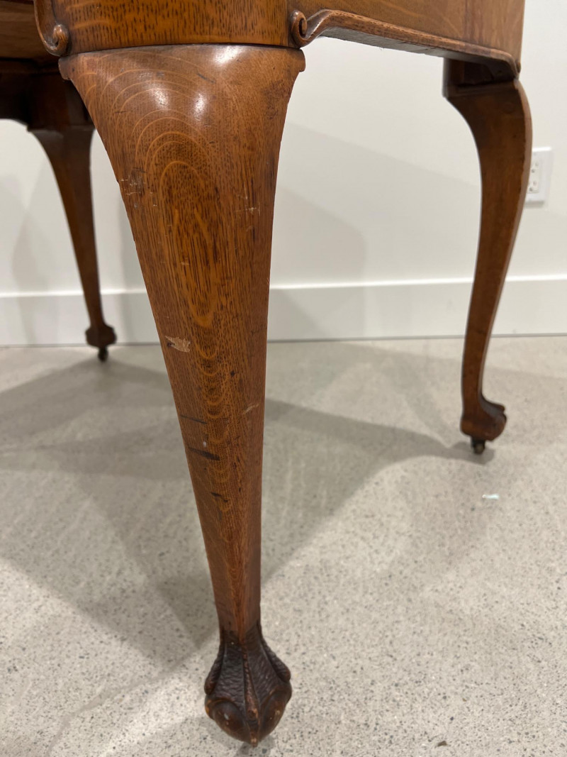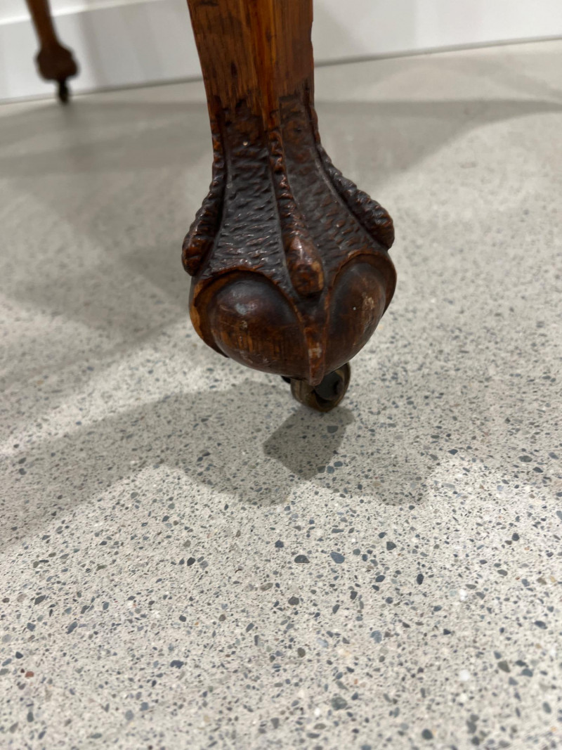 Lot # 11 - Antique Oak Game Table on Casters – Carved Claw Feet