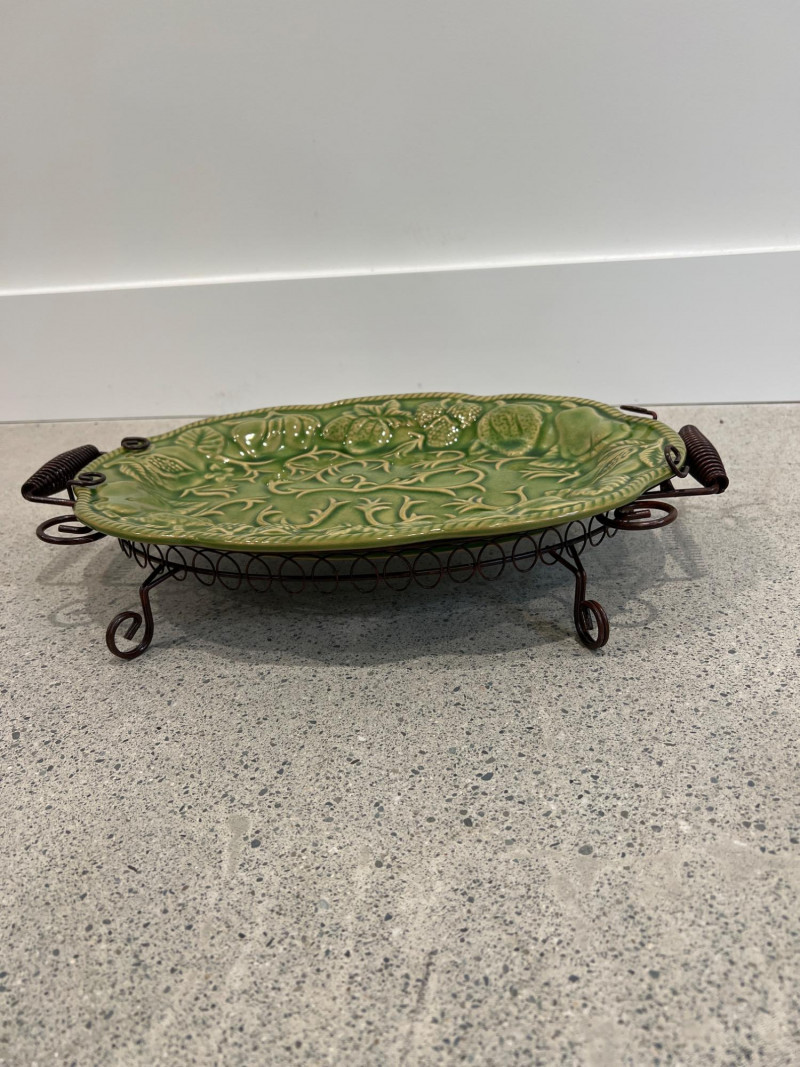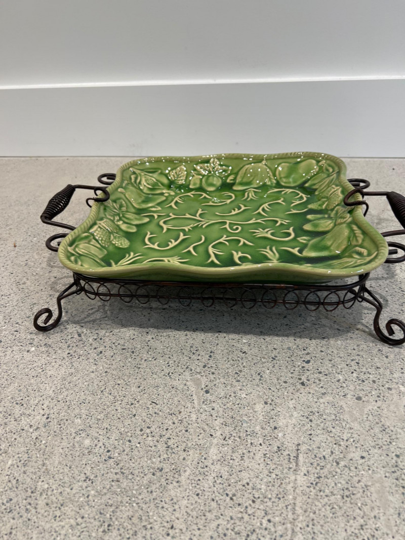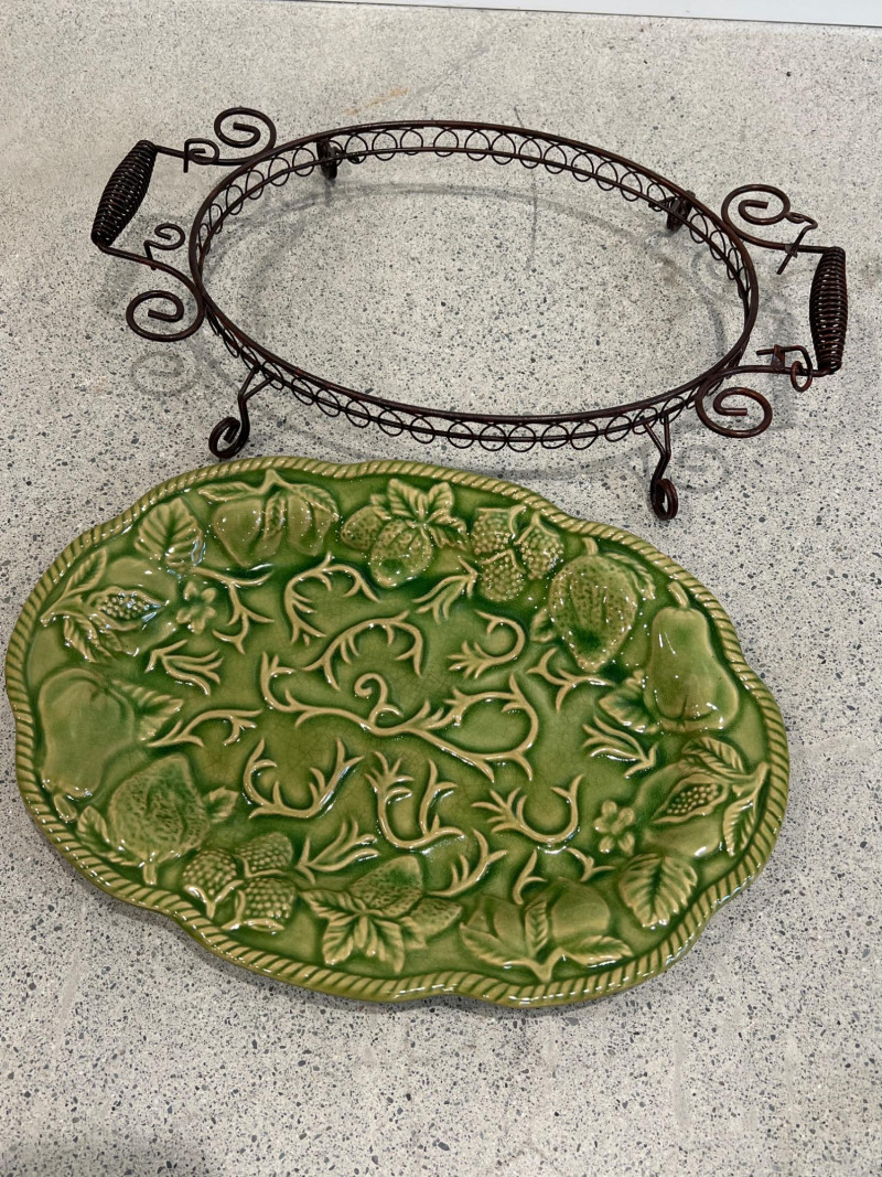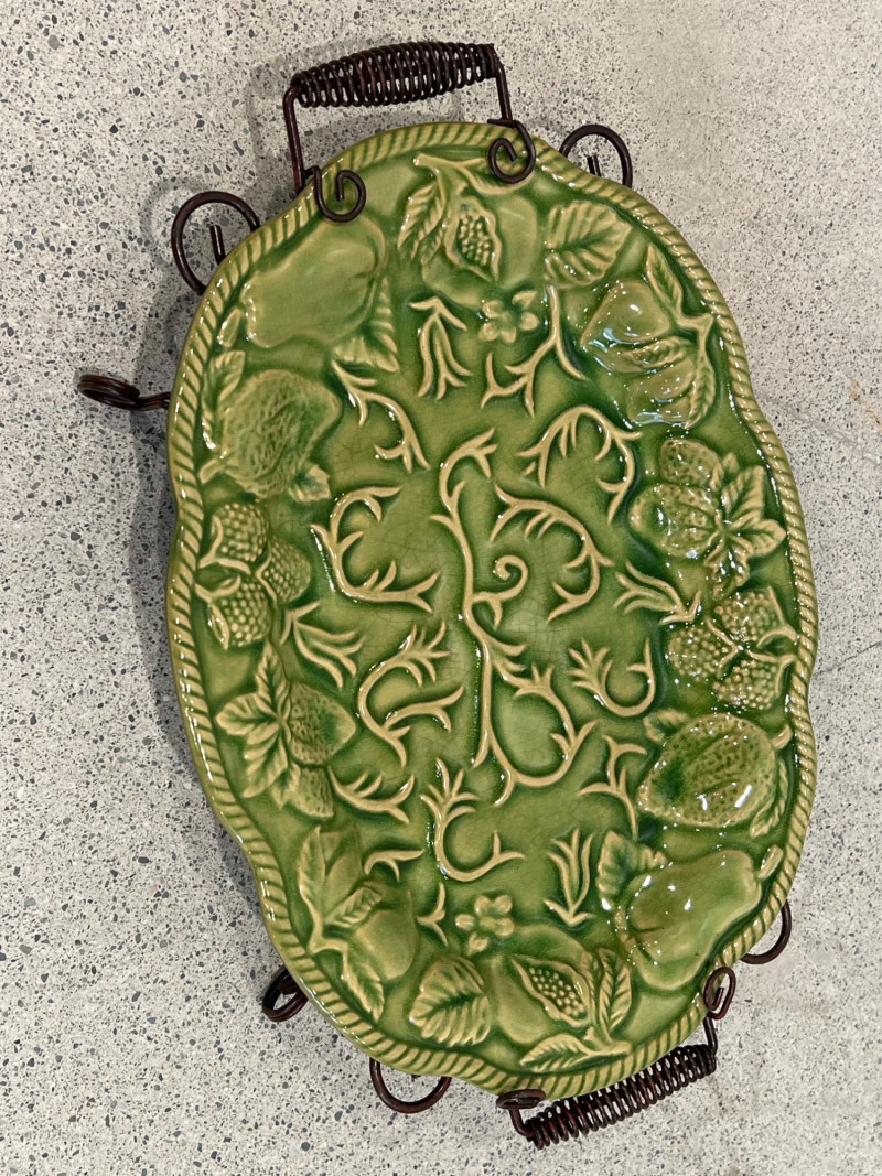 Lot # 31 - Vintage Elements Green Embossed Ceramic Platters With Wire Racks