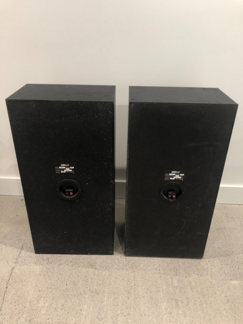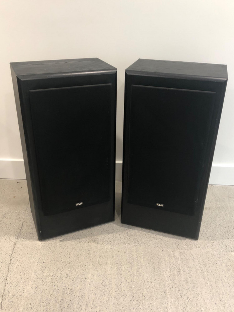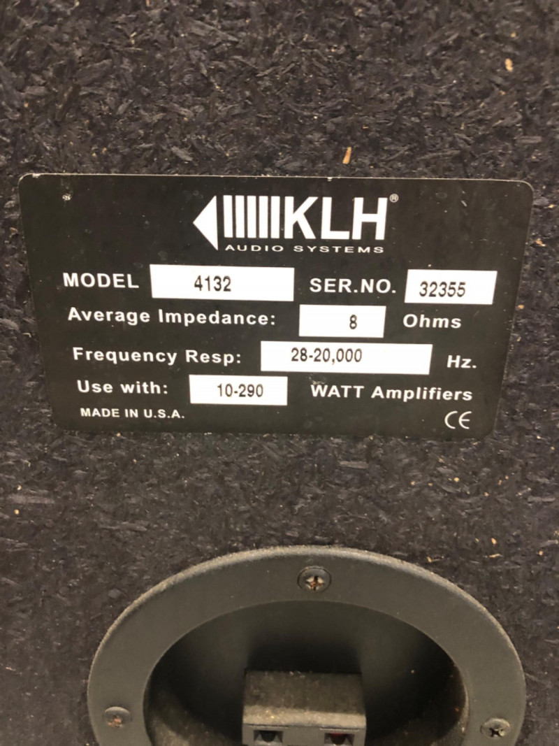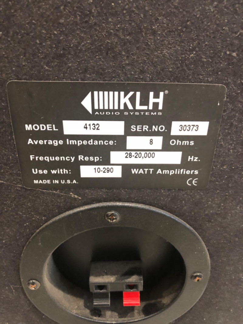 Vintage KLH Audio Systems 4132 floor speakers with original black wood cabinets. Serial 32355. Each speaker is rated for 10–290W amplifiers, with 8 ohms impedance and a frequency response of 28–20,000 Hz. Model: KLH 4132 Impedance: 8 ohms Frequency Range: 28–20,000 Hz Power: 10–290 watt amps Untested – sold as-is. Please review photos for condition. Due to Size/Fragility: This Item Is Not Eligible for Shipping. Available for Local Pickup Only.