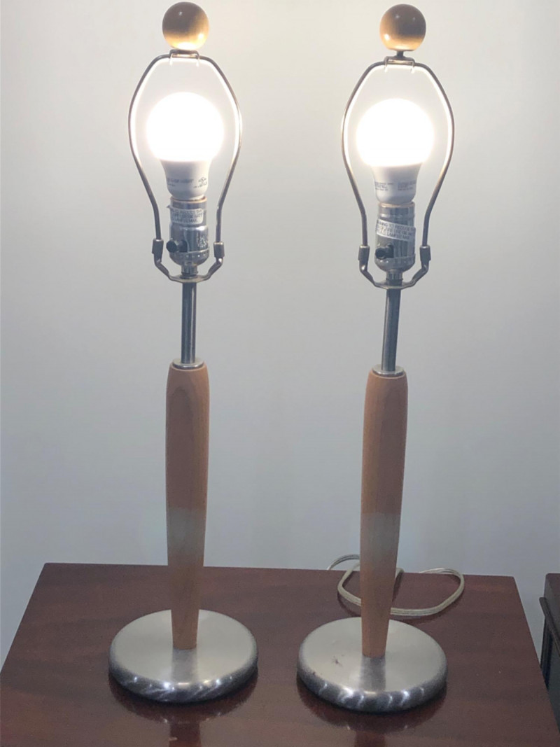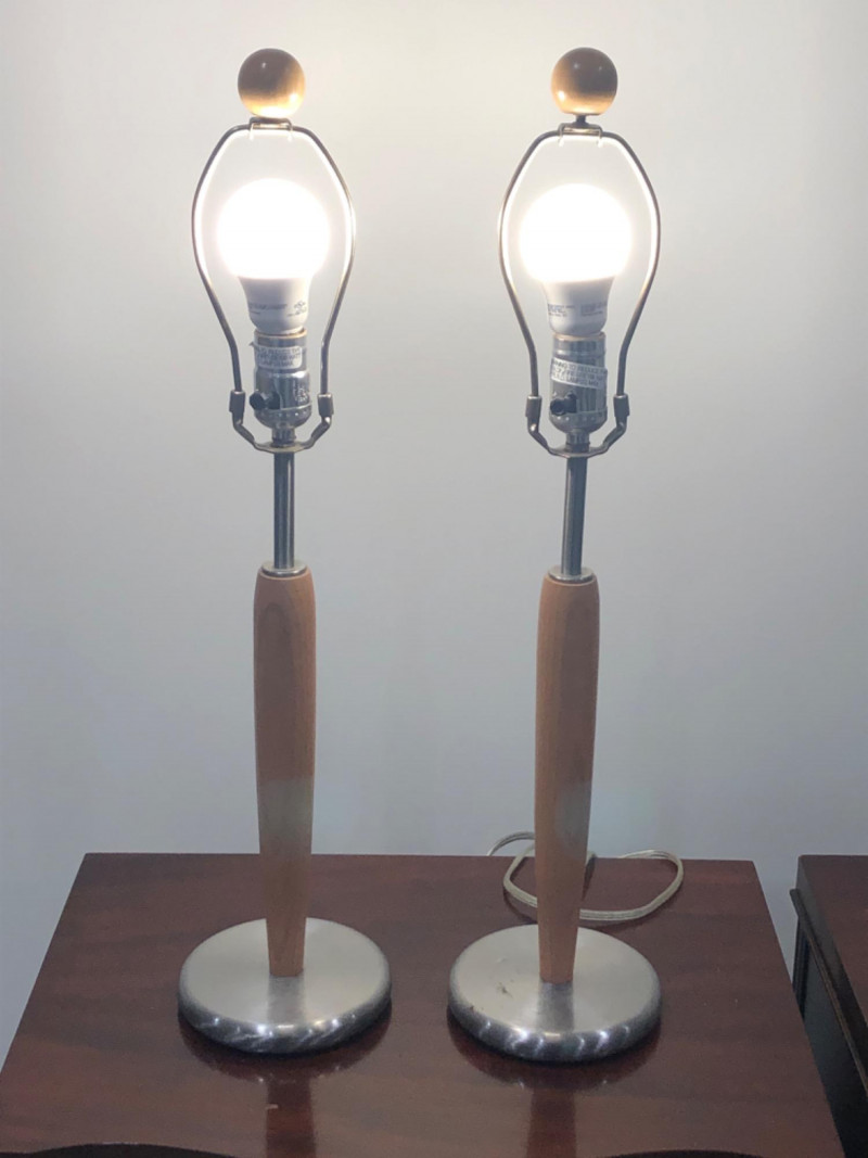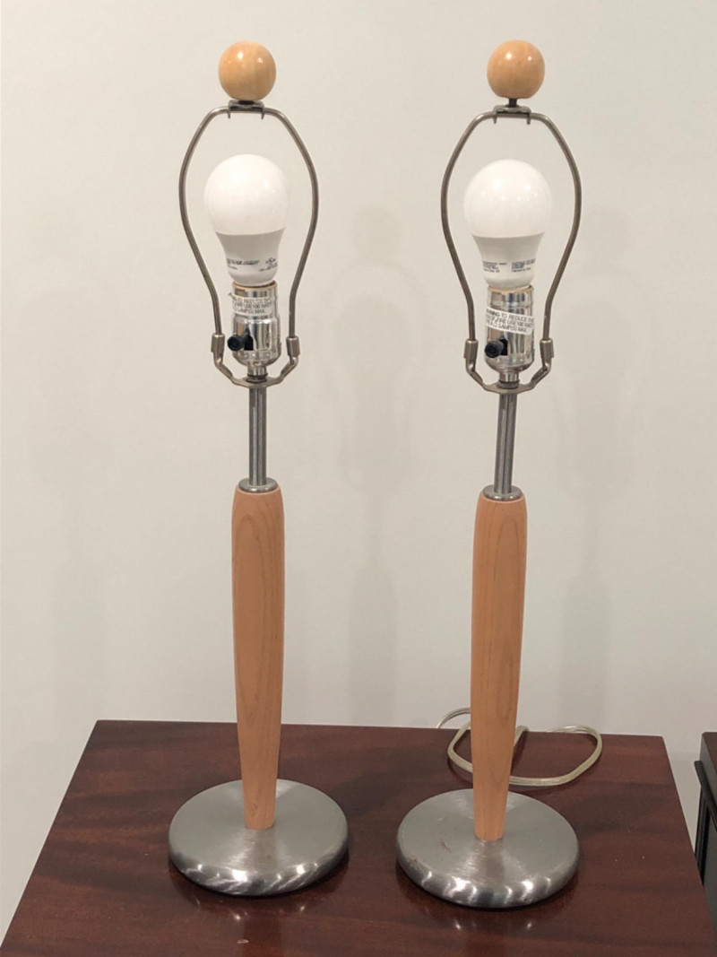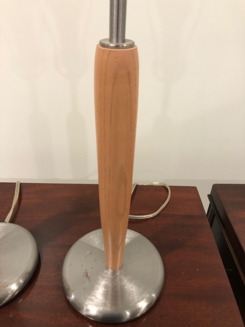 Lot # 81 - Pair of 24" Mid-Century Style Table Lamps – Wood & Brushed Metal Base