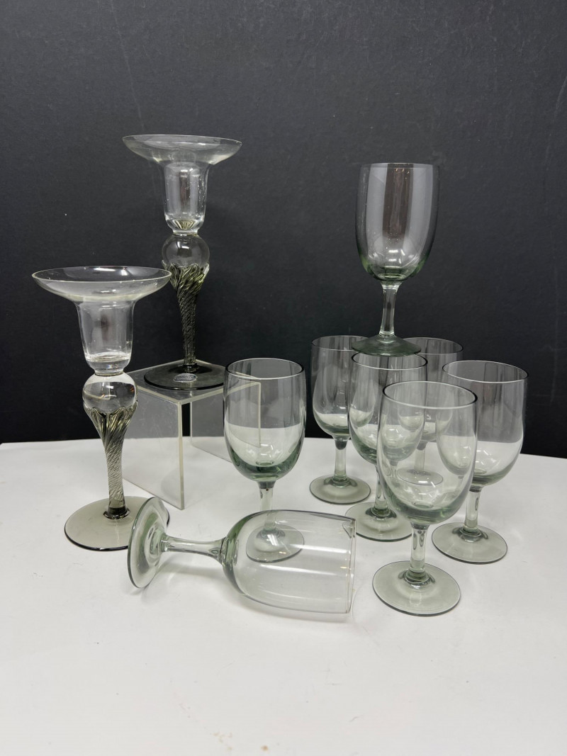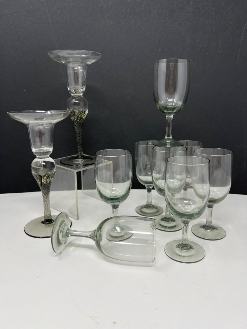 Lot # 96 - Bohemia Crystal Candlesticks & 7 Smoky Cordials – Czech Glass Set
