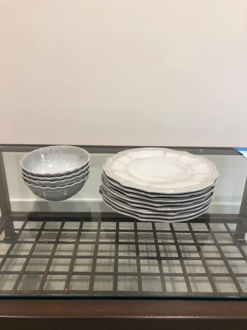 Lot # 99 - Williams Sonoma Dusty Grey Melamine Set – 8 Plates, 4 Bowls