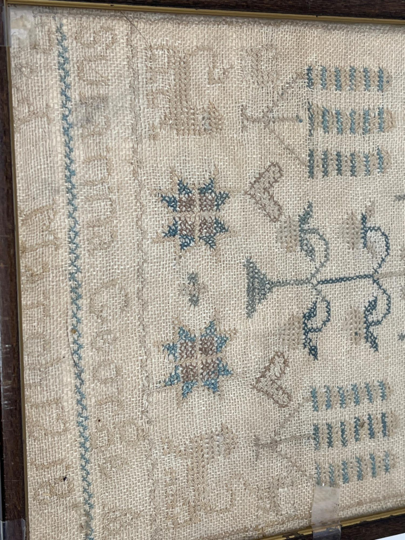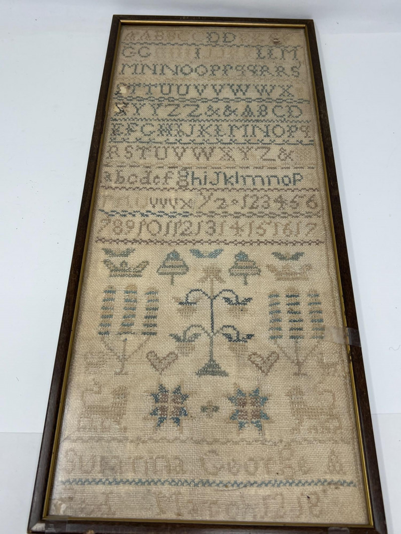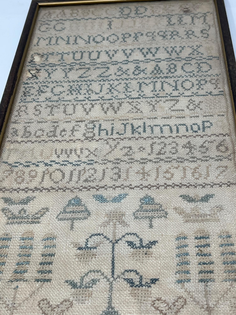 Lot # 110 - Two Framed Antique 1800s School Samplers & 1927 Educator’s Book