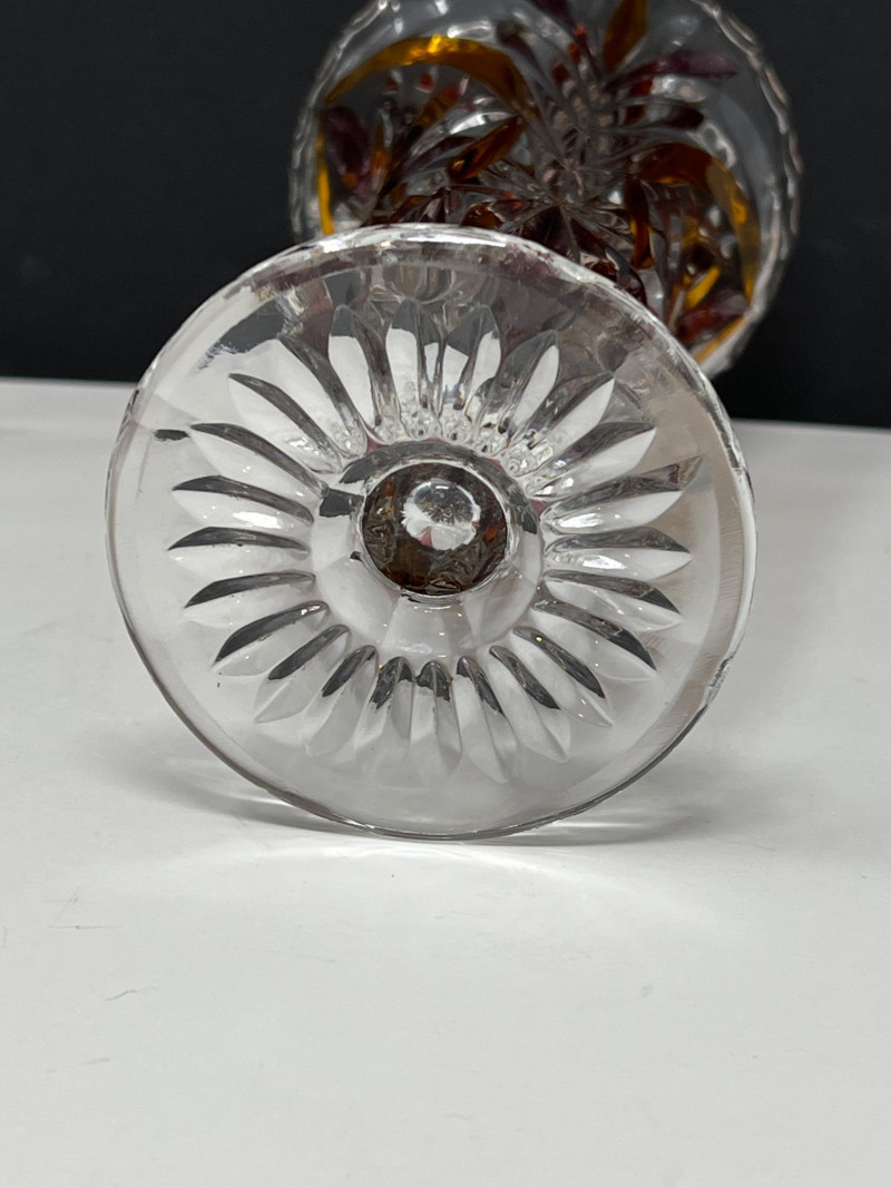 Lot # 112 - Cut Bohemian Amber Glass Vase – Star & Fan Pattern