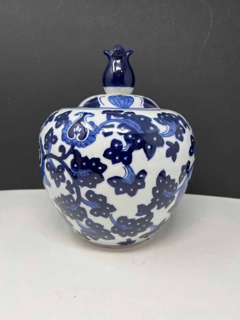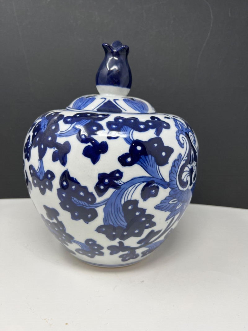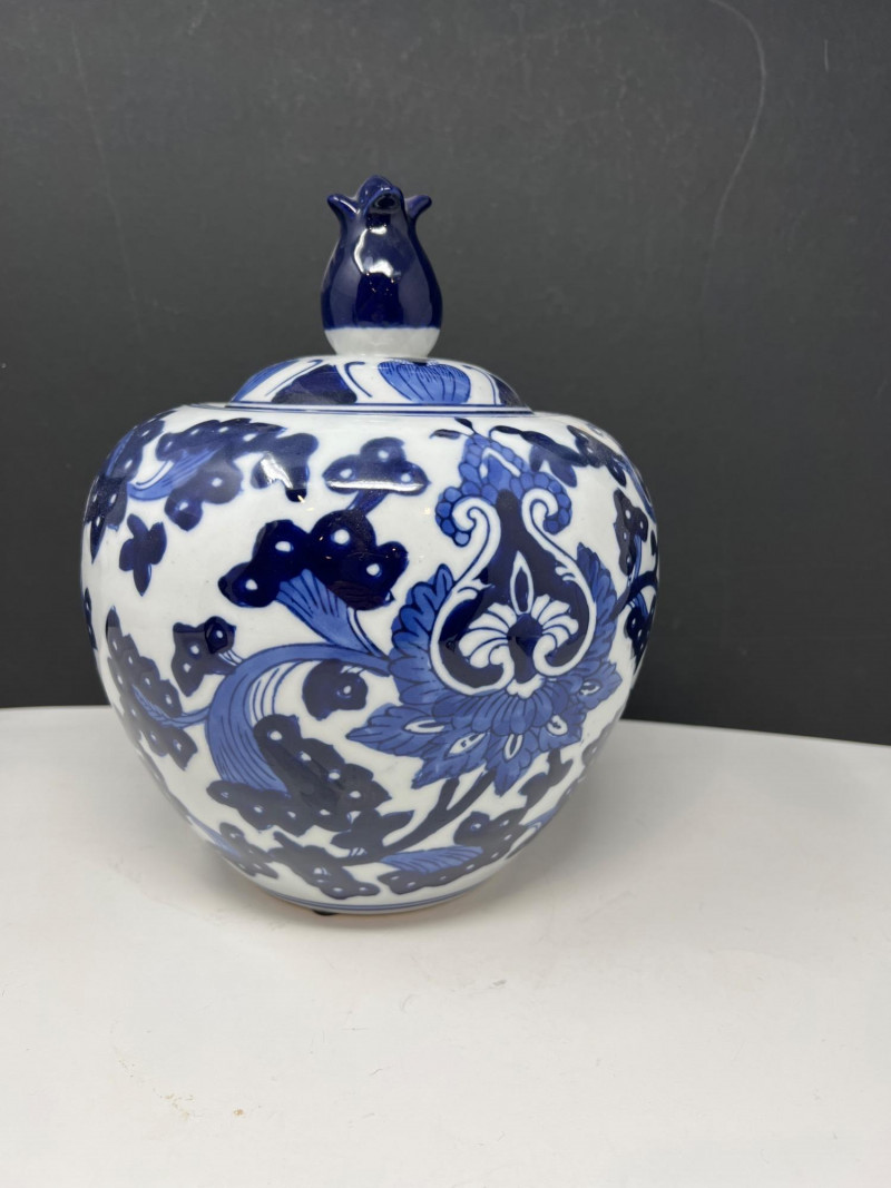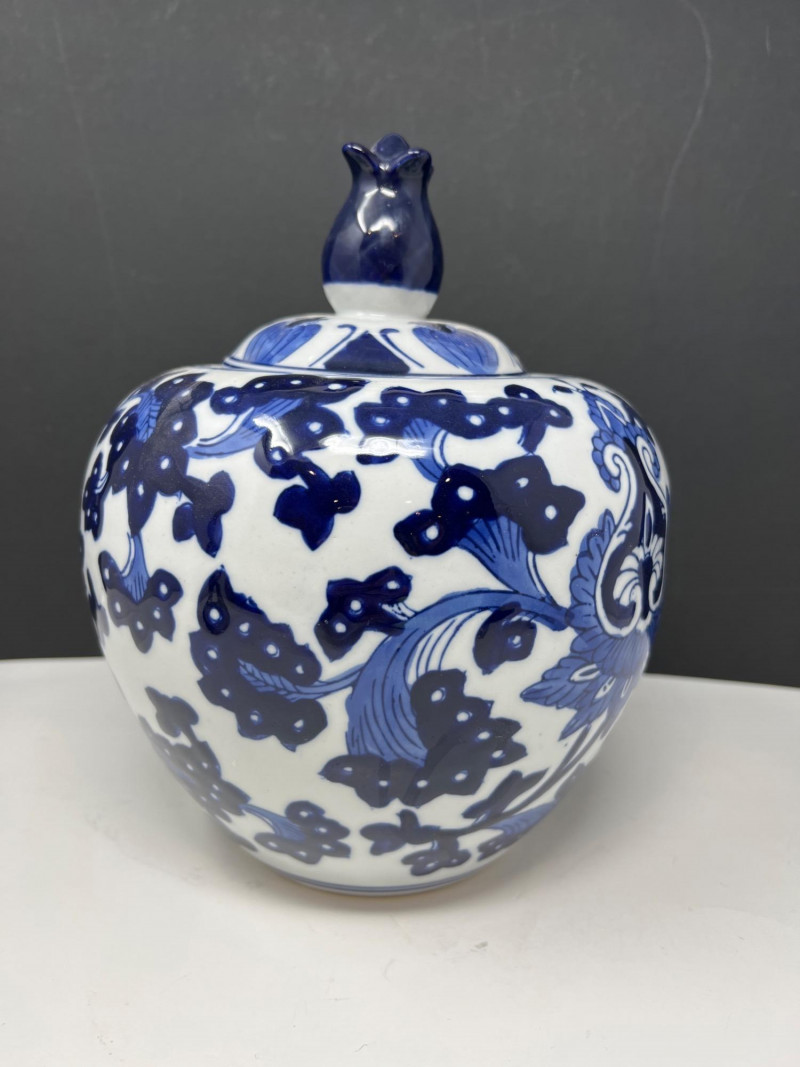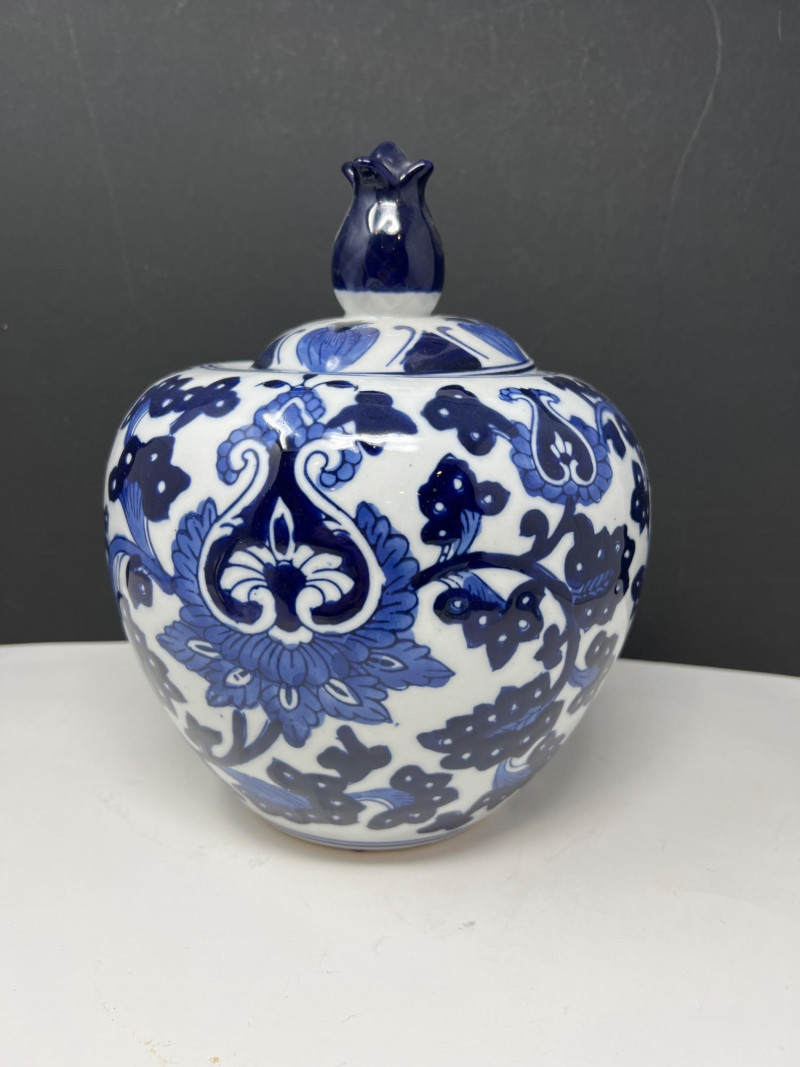 Lot # 113 - Benjara Blue & White Porcelain Ginger Jar with Lid – Floral Design
