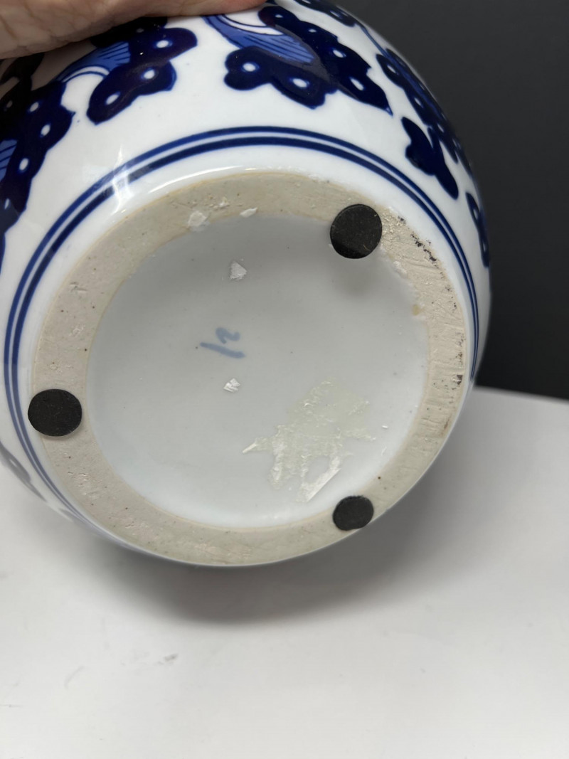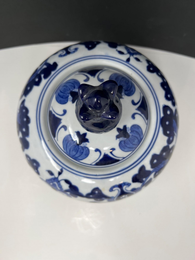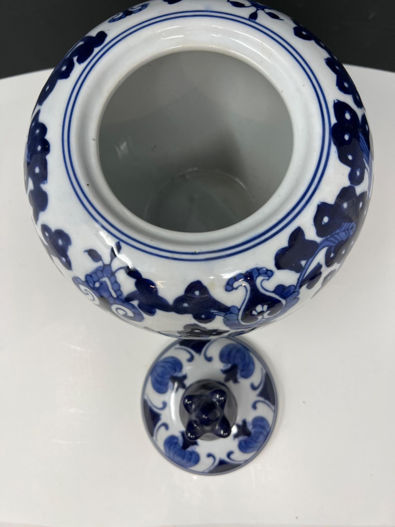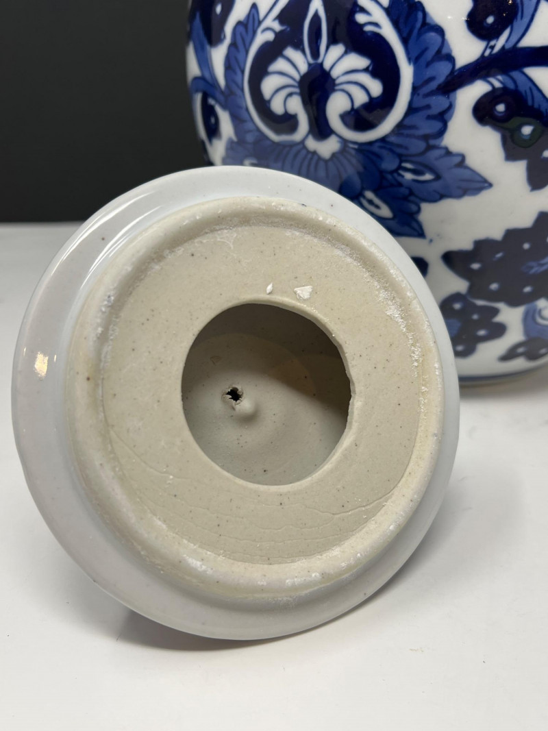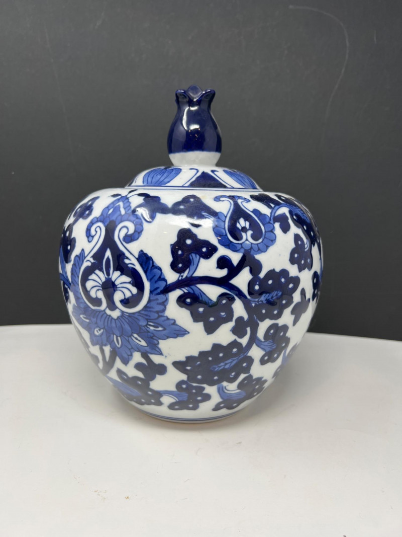 Lot # 113 - Benjara Blue & White Porcelain Ginger Jar with Lid – Floral Design