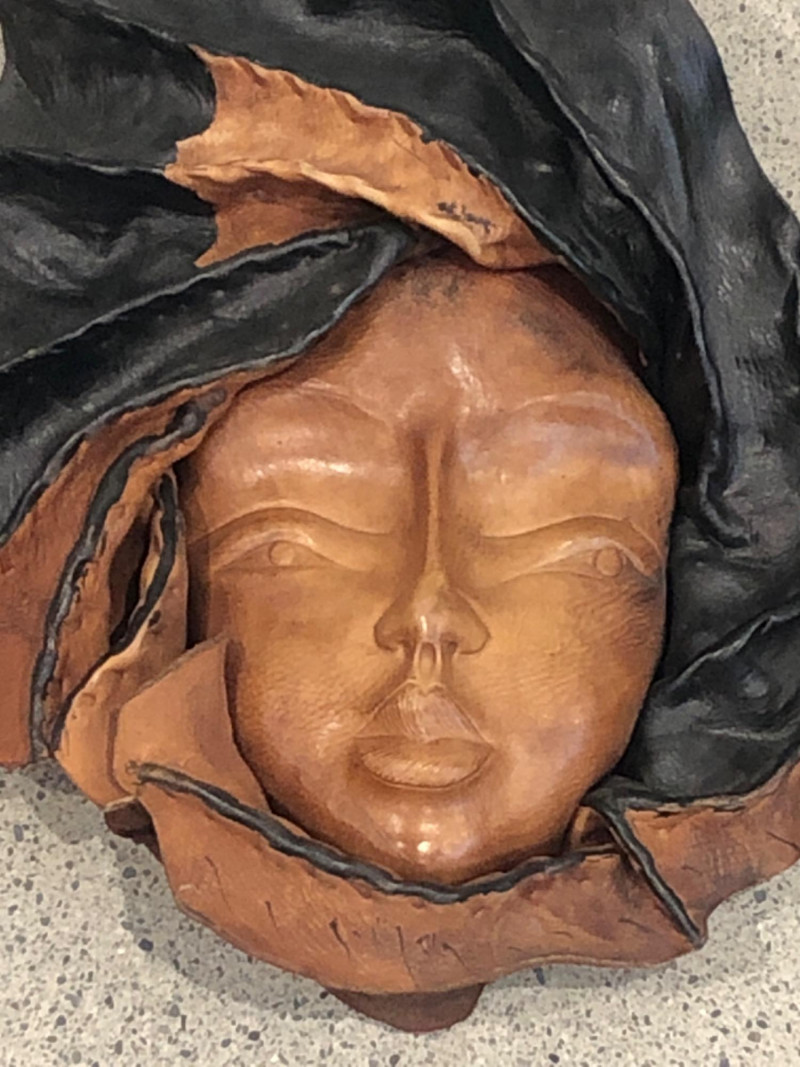 Lot # 128 - 2 Artist Wall Masks – Leather Face & Signed 1988 Copper Bust