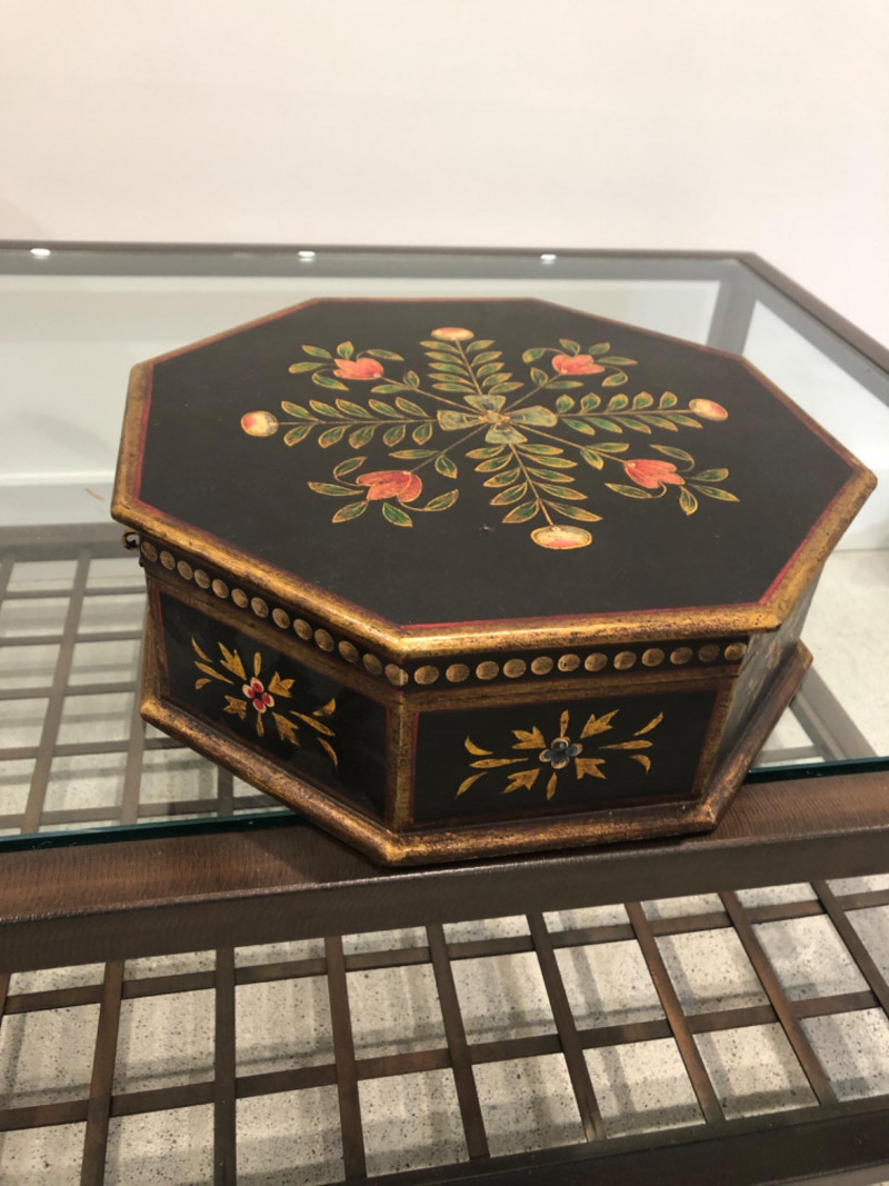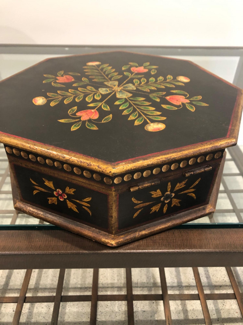 Lot # 131 - Hand-Painted Octagonal Hinged Wood Box – Floral Folk Art