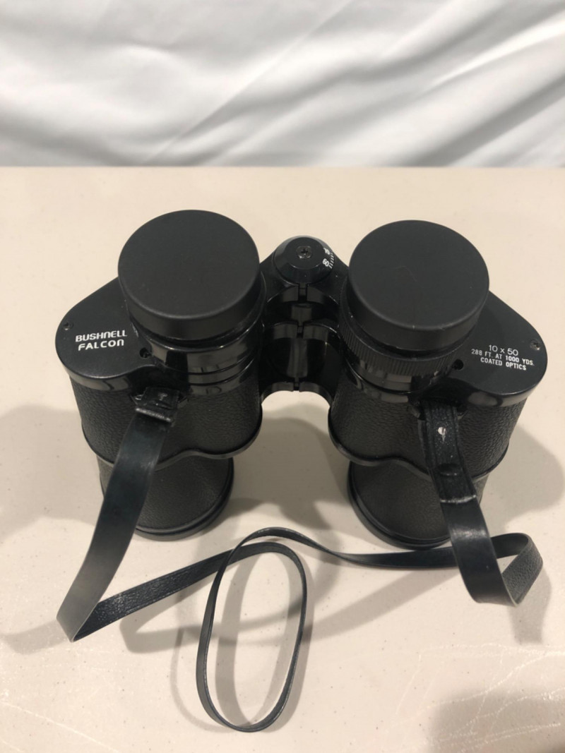 Reliable and rugged, these Bushnell Falcon 10x50 binoculars offer crisp 10x magnification with 50mm objective lenses—perfect for birding, sporting events, or general outdoor viewing. Featuring a classic Porro prism design and InstaFocus lever for smooth, quick focusing. Fold-down rubber eyecups make them eyeglass-friendly, while the rubberized grip ensures comfort and control. Comes with its original carry case and neck strap. A trusted name in optics, ideal for enthusiasts and casual adventurers alike.