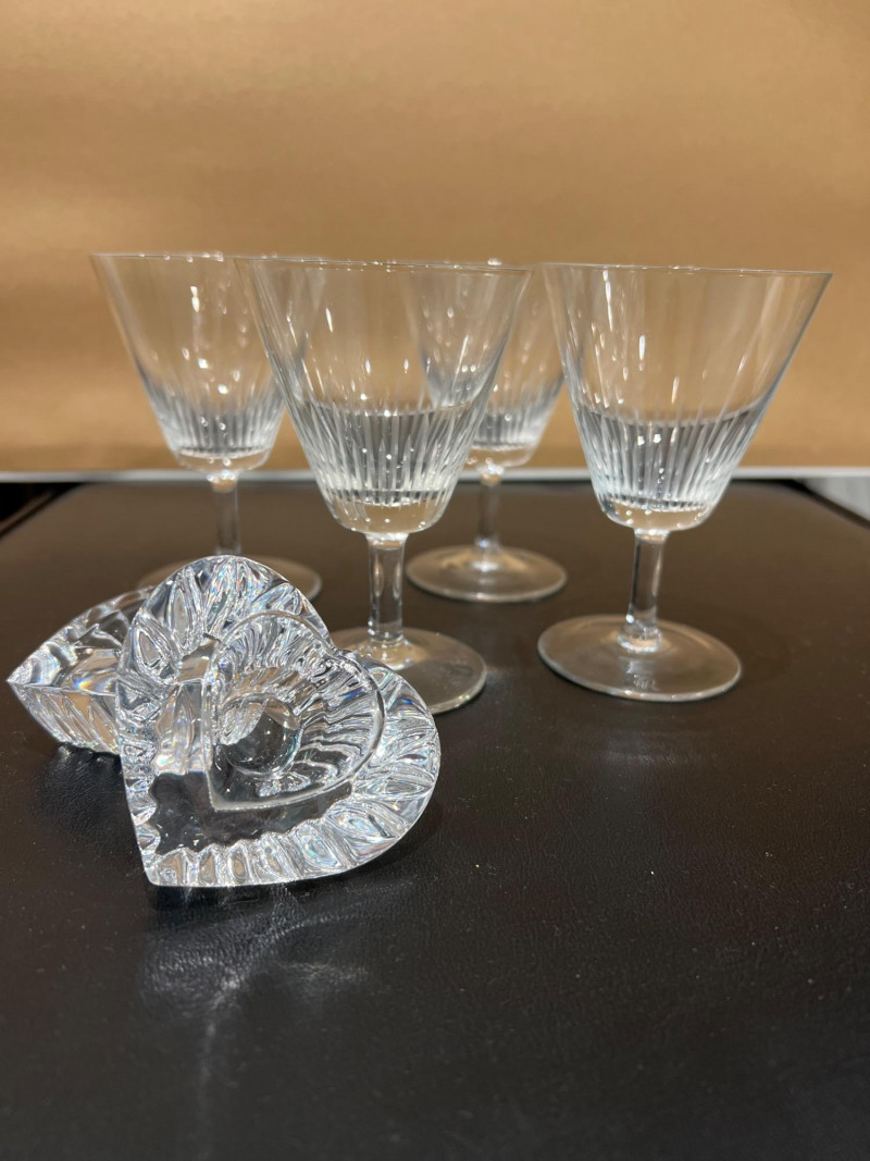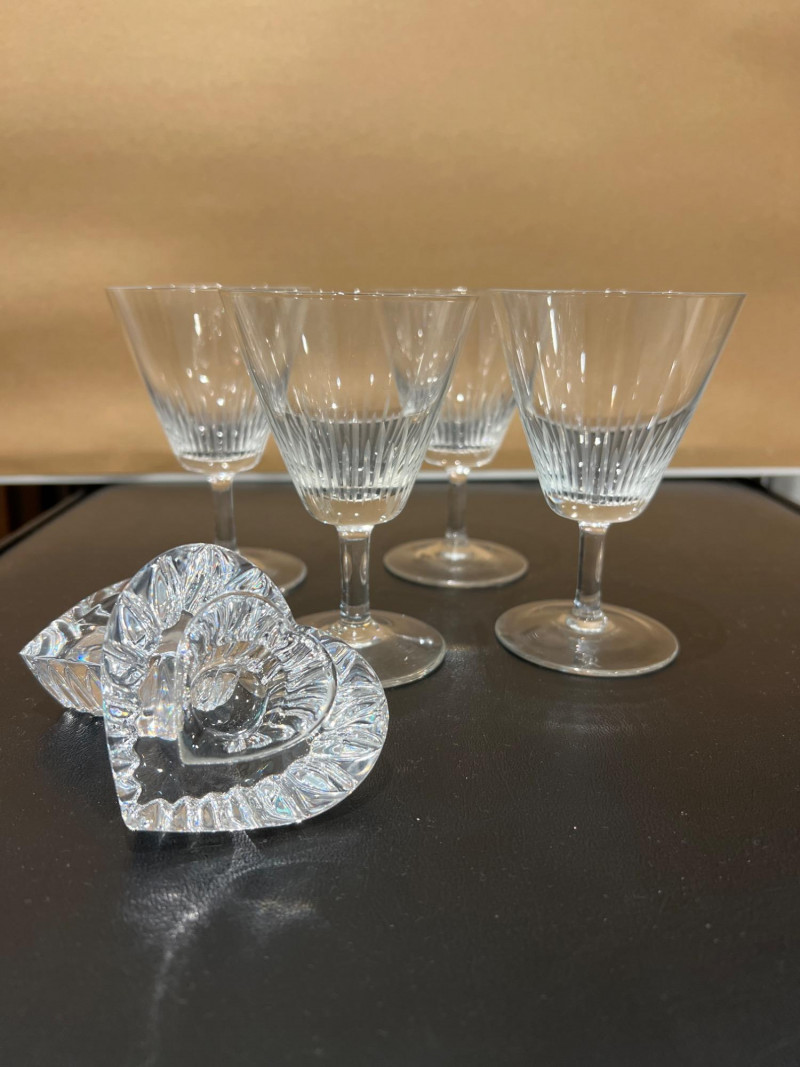Lot # 145 - Four Rosenthal Crystal Glasses & Heart Shaped Crystal Candle Holders
