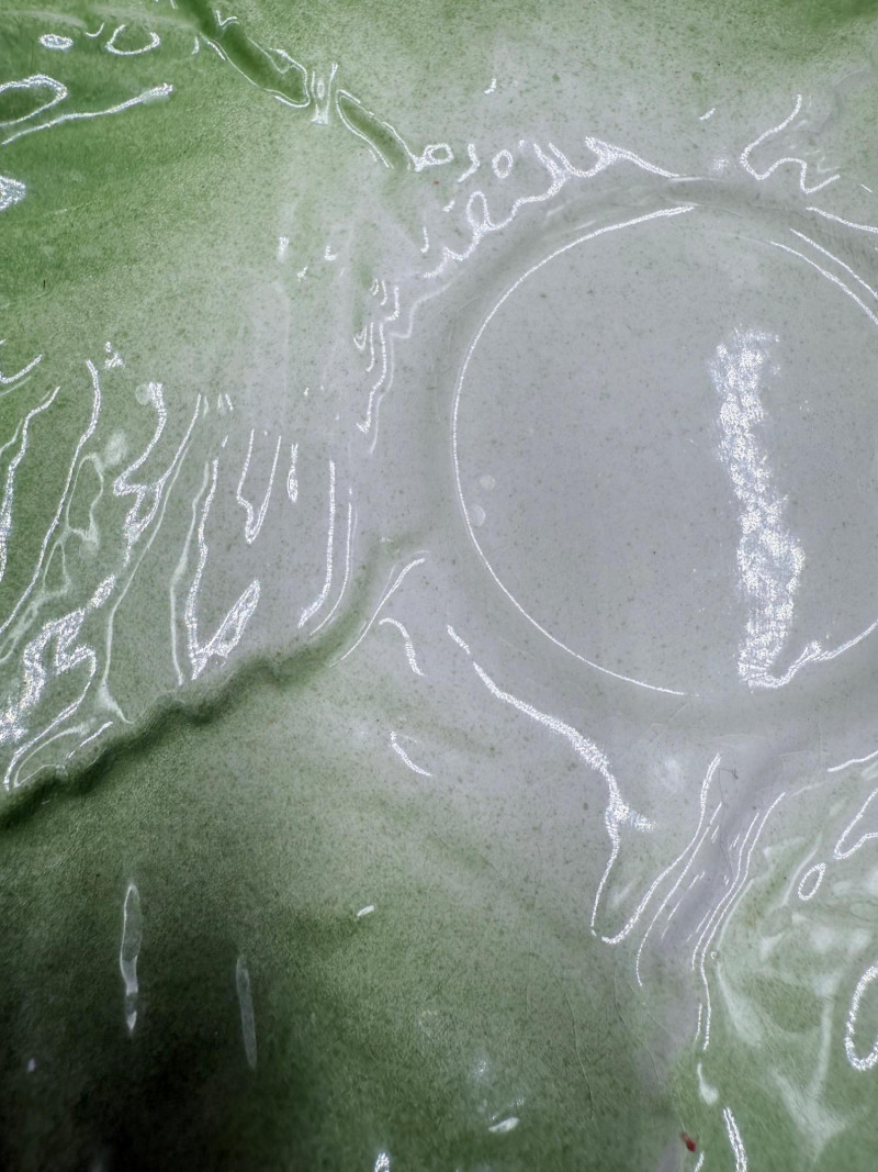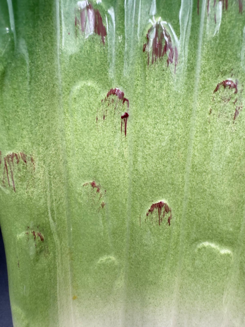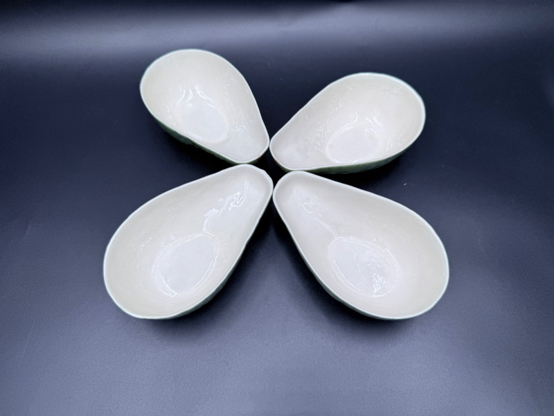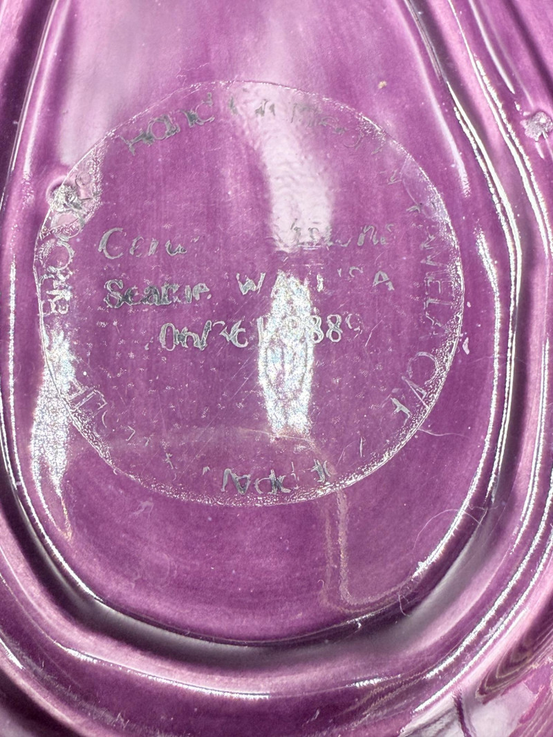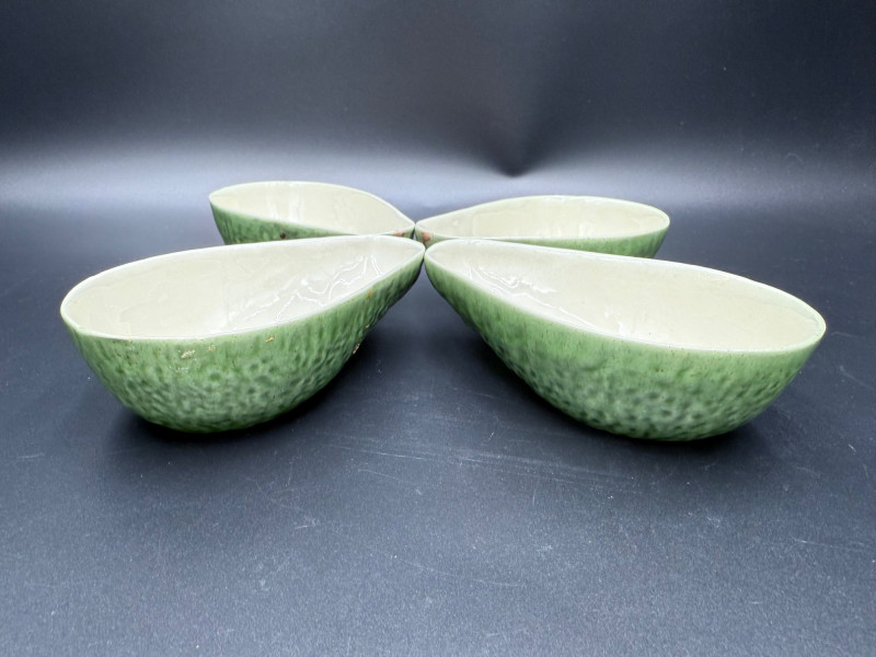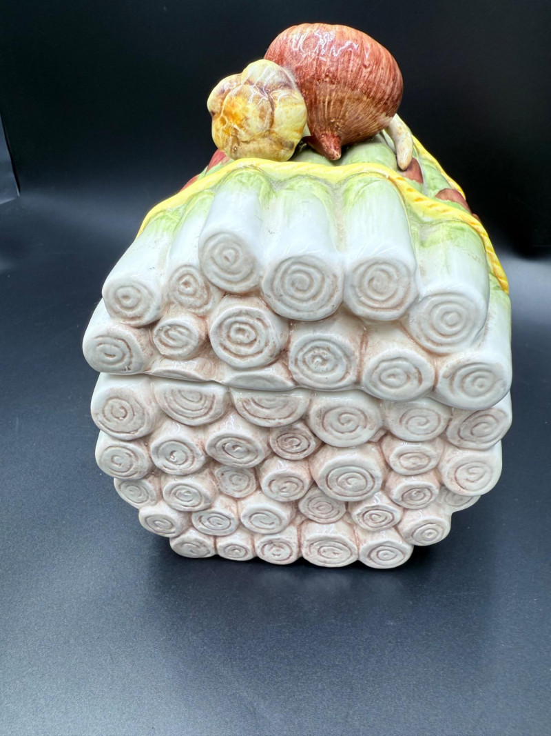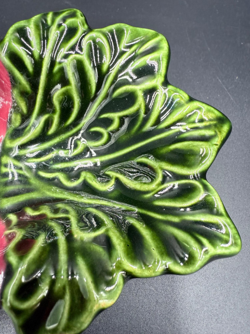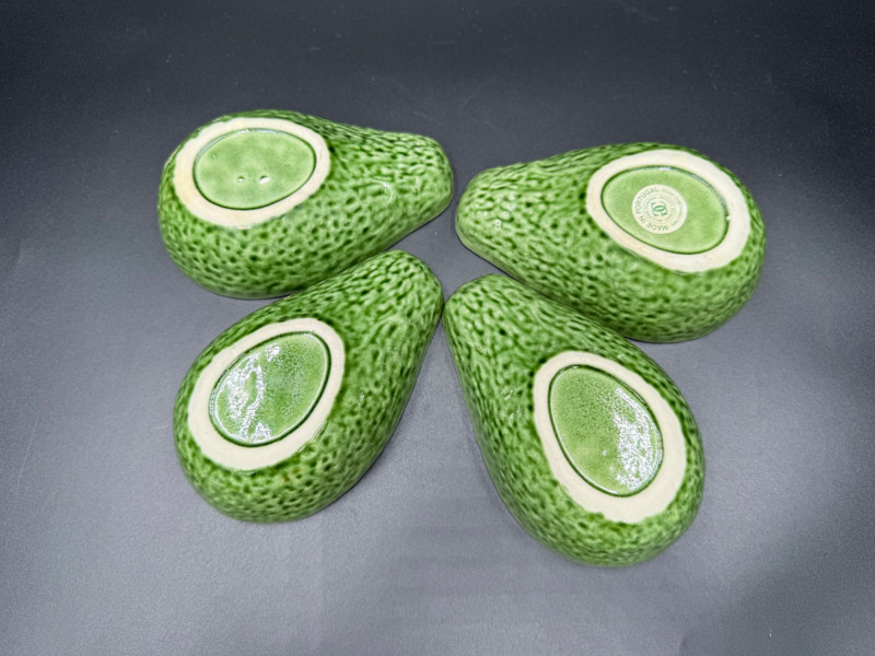 Vegetable Dish and Serveware Collection Dish and serveware collection shaped and finished to resemble vegetables including cabbage, lettuce, asparagus, beet, avocado, and eggplant. Forms include bowls, plates, dishes, a pitcher, and a lidded container, each molded with surface detailing and finished in colors reflecting the represented vegetables. Several items are marked with origin stamps including Portugal and Seattle, WA. Dimensions: Cabbage Bowl: 12" D x 5" H Celery Pitcher: 11" L x 5" W x 11" H Beet Dish: 6.5" x 4.5" Eggplant Dish: 10" x 5" Asparagus Plate: 12.5" L x 9" W Asparagus Dish: 8" L x 6" W x 7" H Asparagus Tray: 10" x 5" Lettuce Plates: 7" D Avocado Bowls: 5.5" x 3.5"
