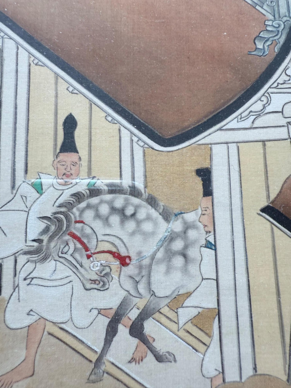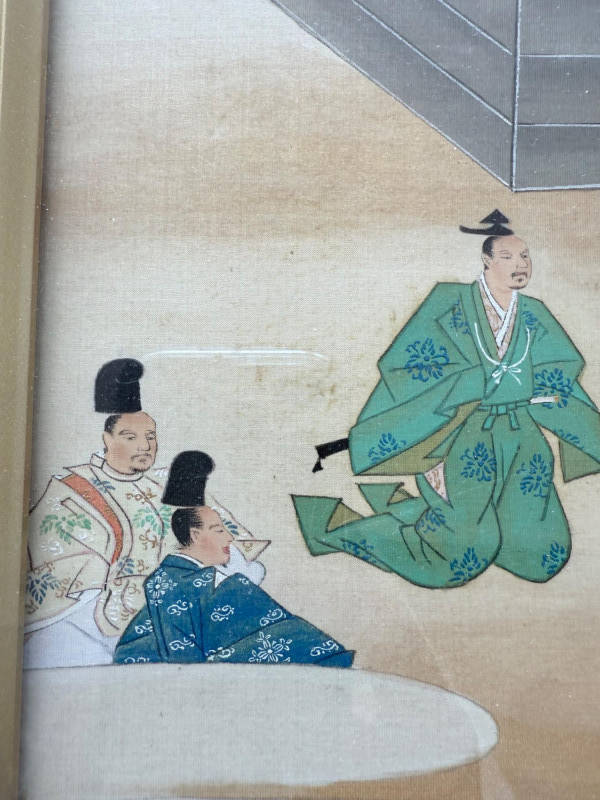 Lot # 31 - 3 Asian Artworks: Landscape, Village Scene and Court Illustration