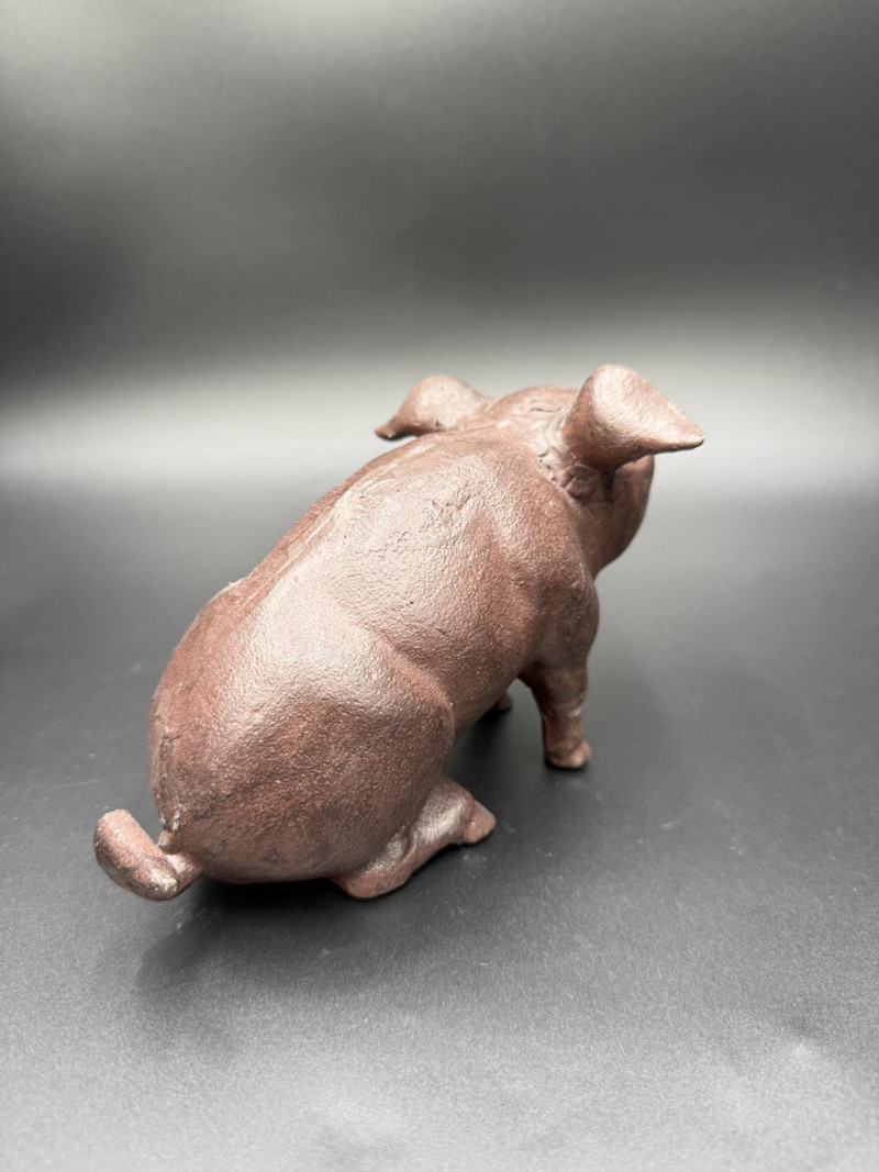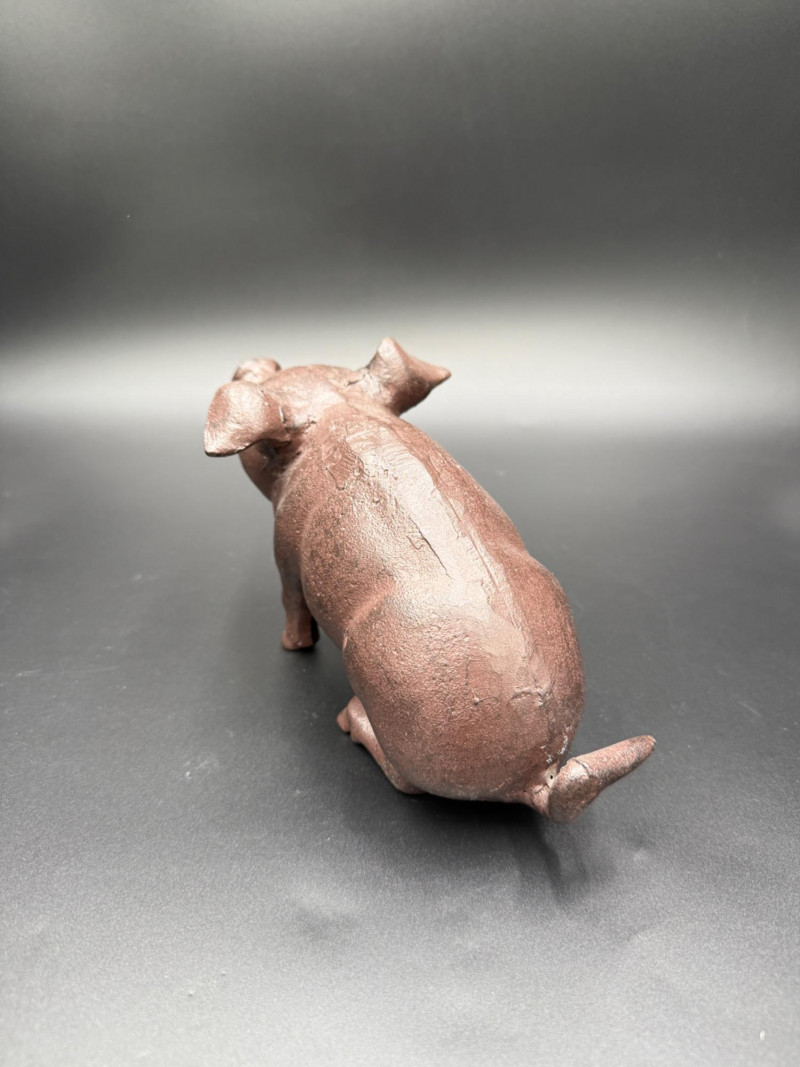 Lot # 33 - Cobalt Blue Glazed Ceramic Vessel Trio with Metal Pig Figurine