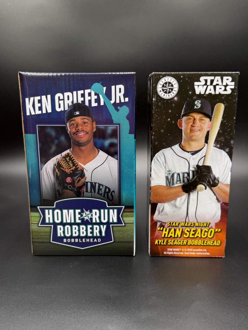 Lot # 41 - Ken Griffey Jr. & Kyle Seager Mariners Bobblehead Pair – Unopened