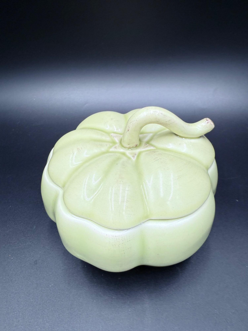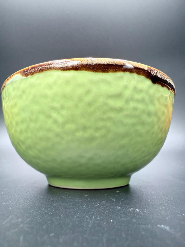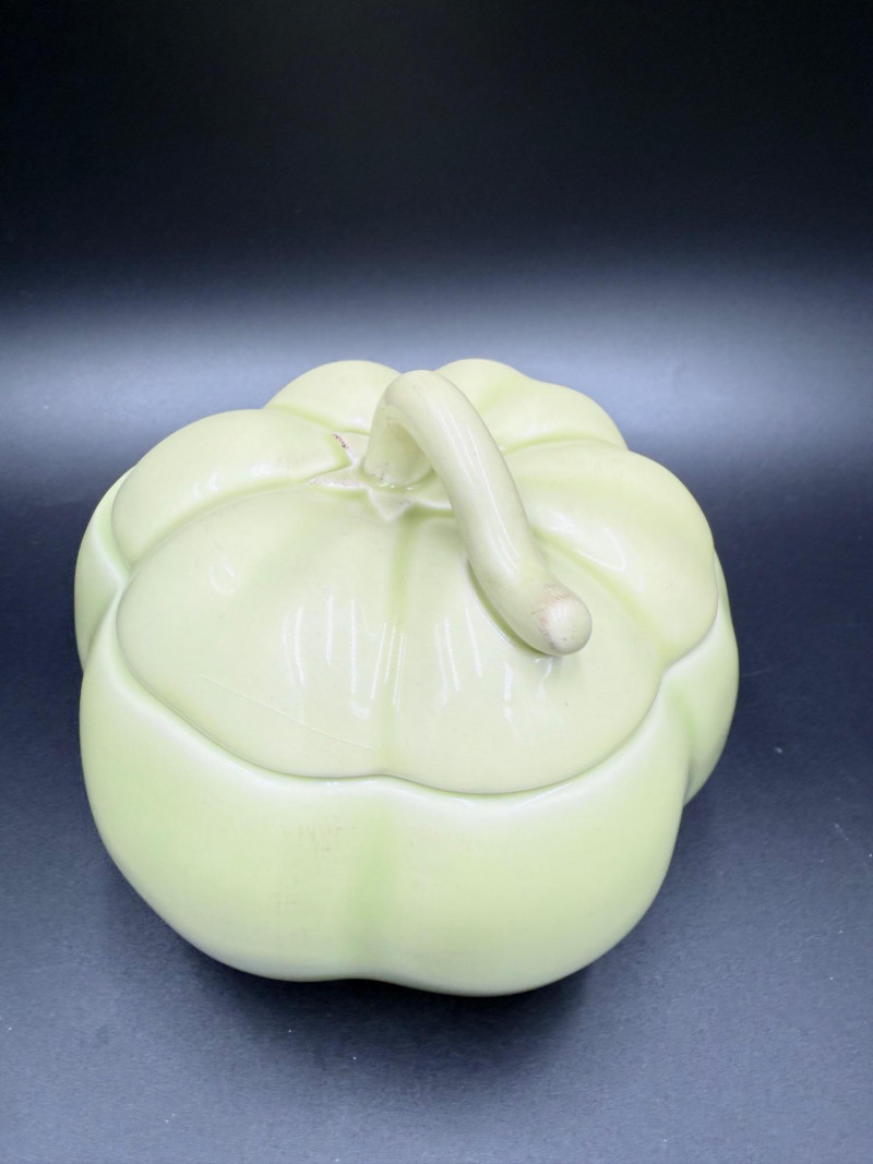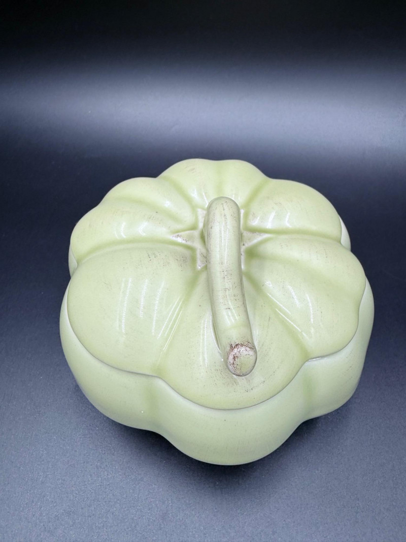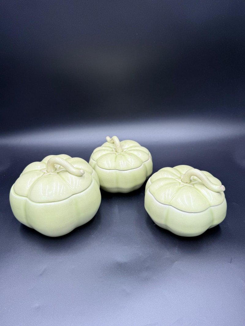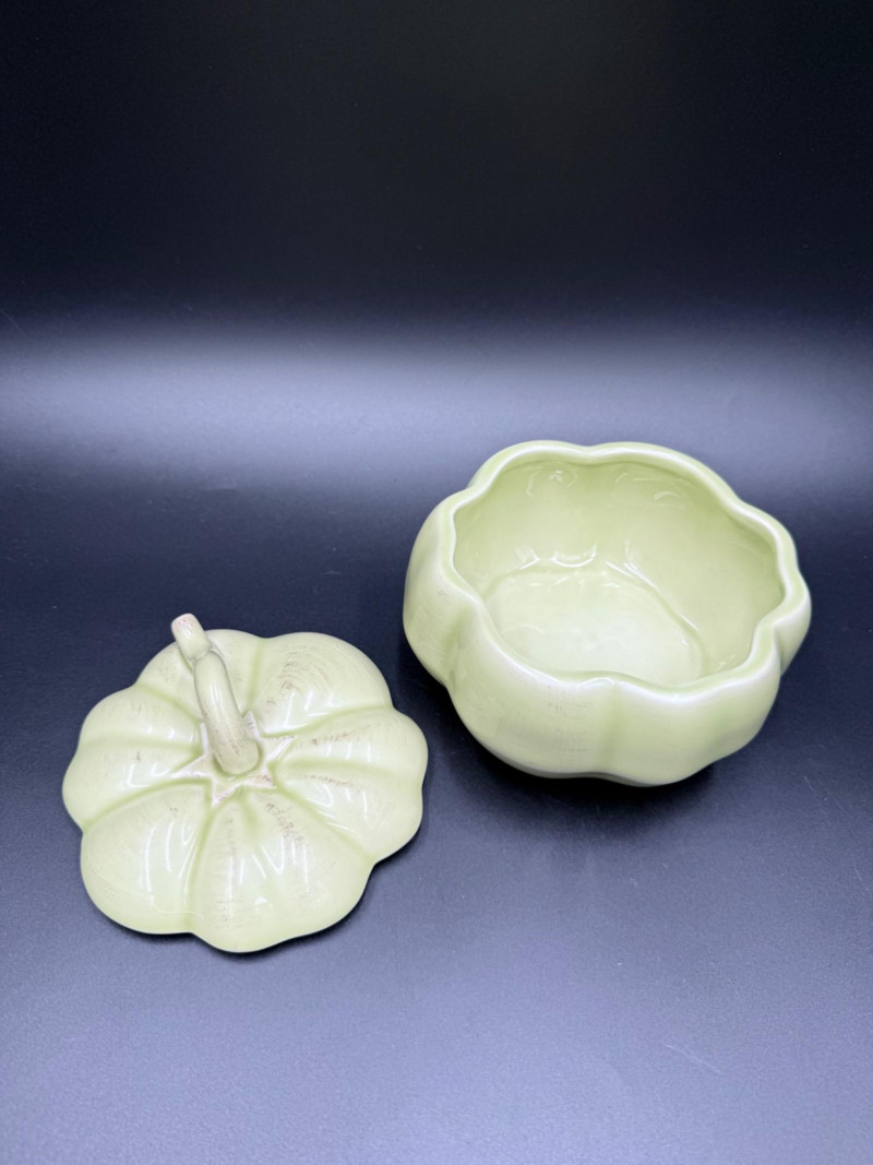 Matceramica, Cordon Bleu and Garden Terrace Ceramic Assortment Three pumpkin-shaped lidded bowls by Matceramica feature lobed bodies and stem-style handles. Four green bowls with vertical relief patterns are marked Cordon Bleu. Three smooth-glazed bowls in yellow, orange, and green are marked Garden Terrace Rice Bowl. All items are ceramic, labeled microwave and dishwasher safe, and originate from Portugal and China. Dimensions: Matceramica pumpkin bowls with lid: 6" diameter x 4.5" height Cordon Bleu green bowls: 3.5" diameter Garden Terrace bowls: 4" diameter Material: Glazed ceramic