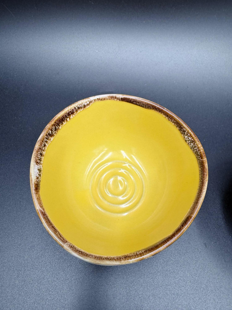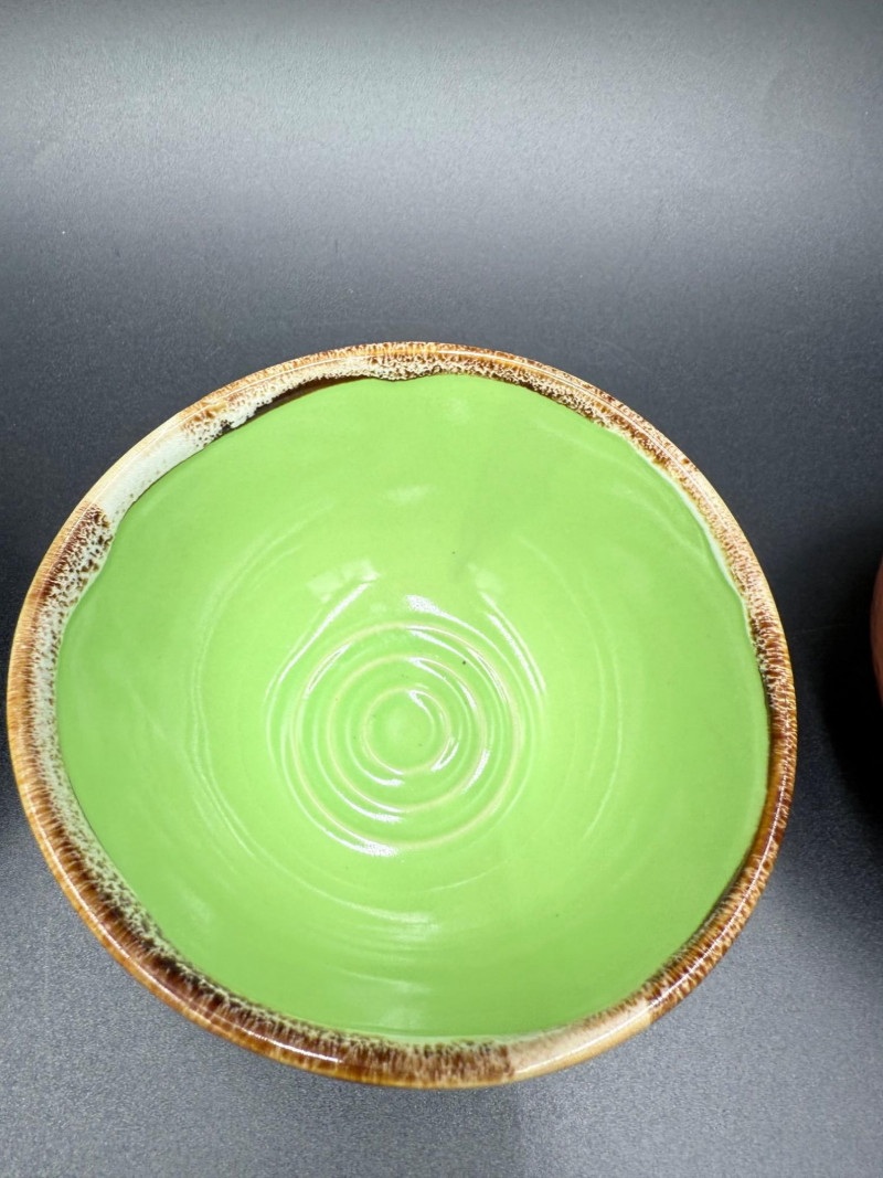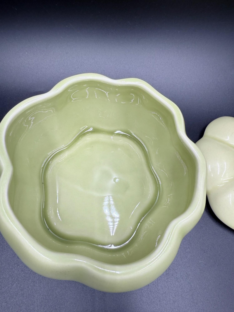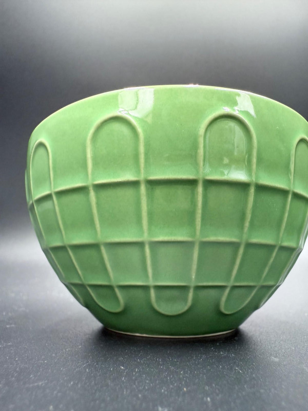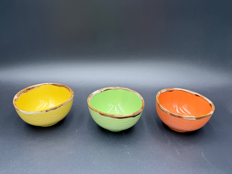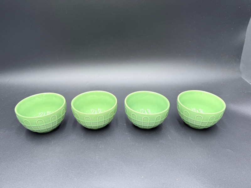 Matceramica, Cordon Bleu and Garden Terrace Ceramic Assortment Three pumpkin-shaped lidded bowls by Matceramica feature lobed bodies and stem-style handles. Four green bowls with vertical relief patterns are marked Cordon Bleu. Three smooth-glazed bowls in yellow, orange, and green are marked Garden Terrace Rice Bowl. All items are ceramic, labeled microwave and dishwasher safe, and originate from Portugal and China. Dimensions: Matceramica pumpkin bowls with lid: 6" diameter x 4.5" height Cordon Bleu green bowls: 3.5" diameter Garden Terrace bowls: 4" diameter Material: Glazed ceramic