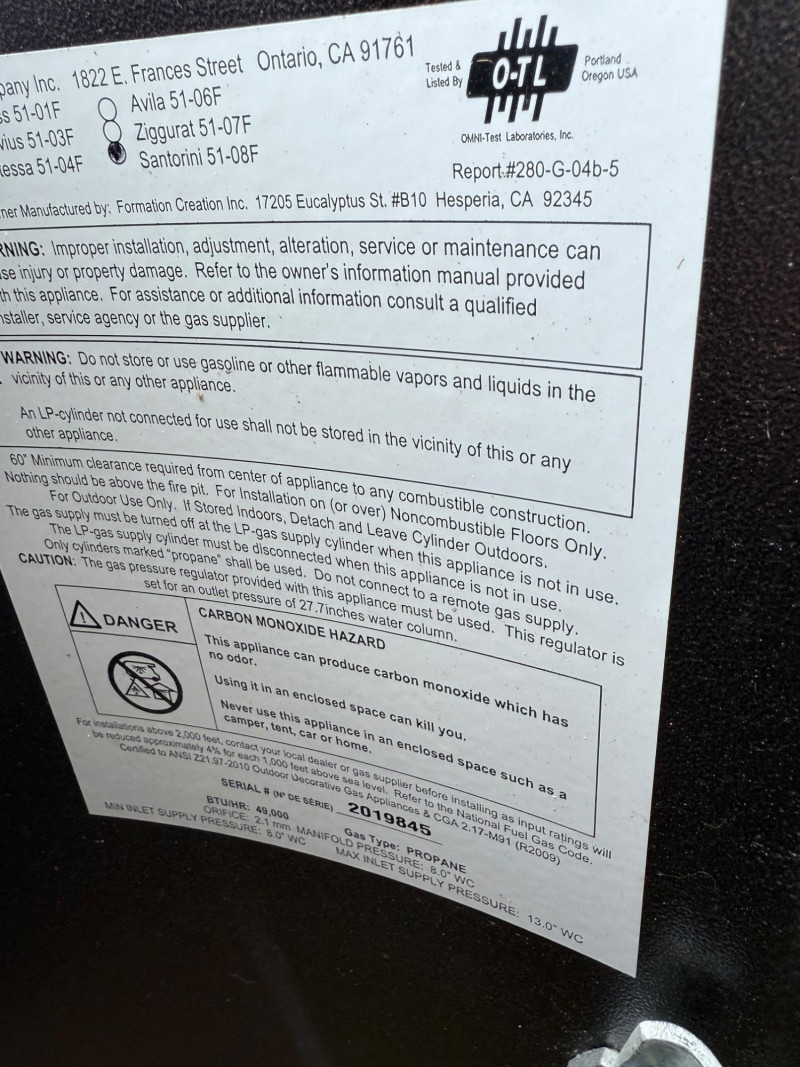 Features: Removable cushion covers, enclosed propane housing, operational flame control
